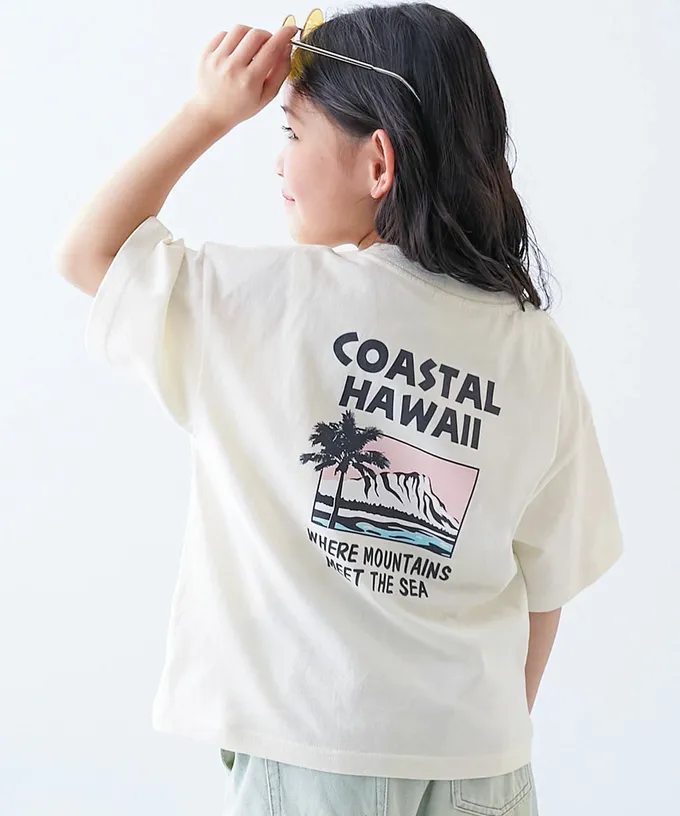 日本 devirock - 世界旅行系列 短袖上衣(小孩)-夏威夷-水藍