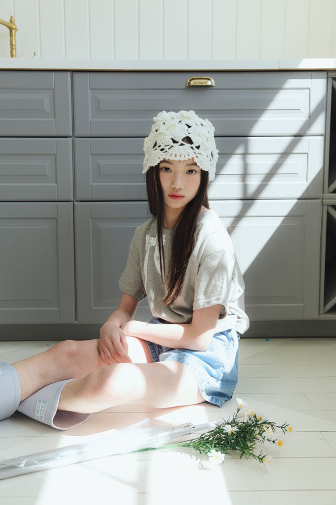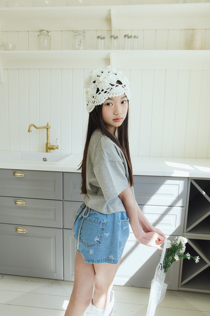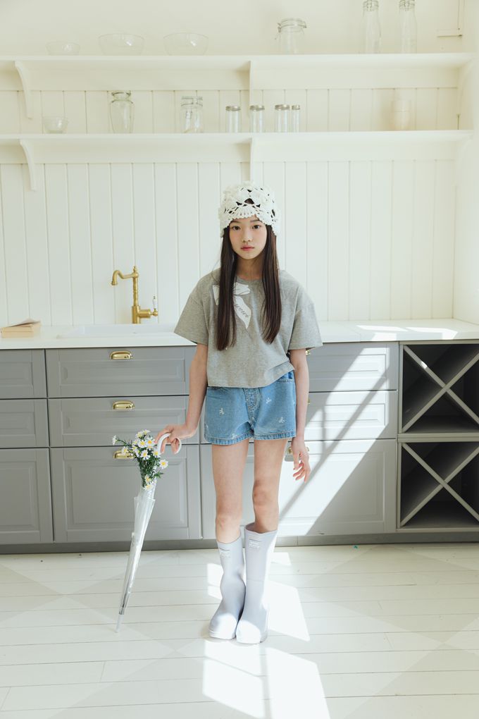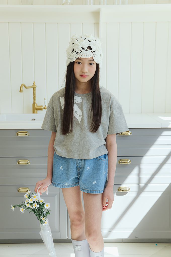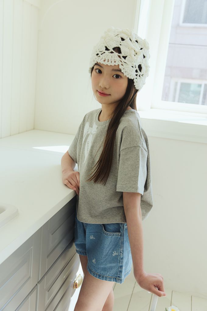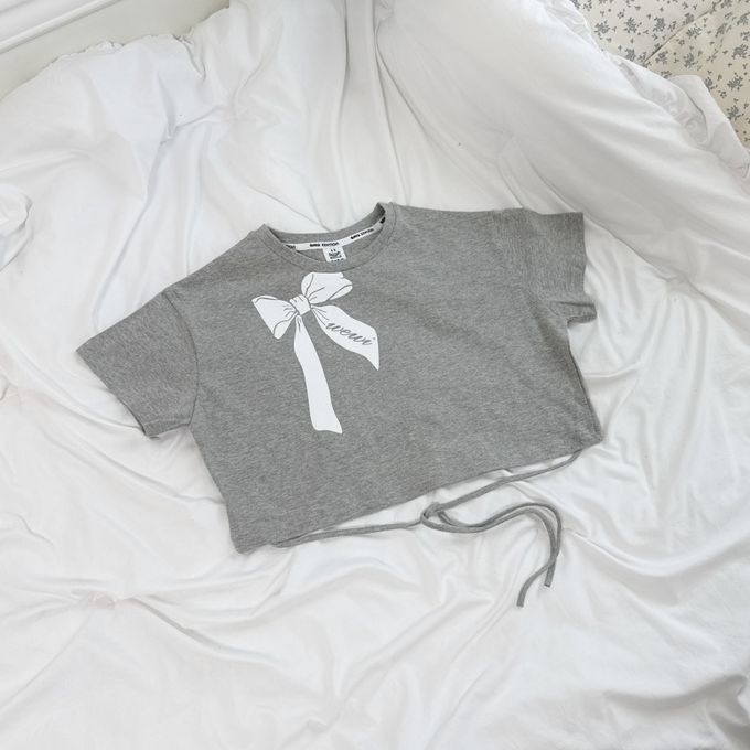 韓國南大門童裝 - sm2 大蝴蝶結印點綴純棉短袖上衣-灰