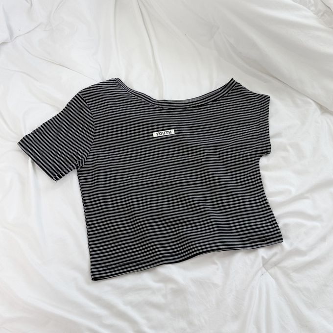 • 品名:sm2 經典條紋造型斜肩短袖上衣