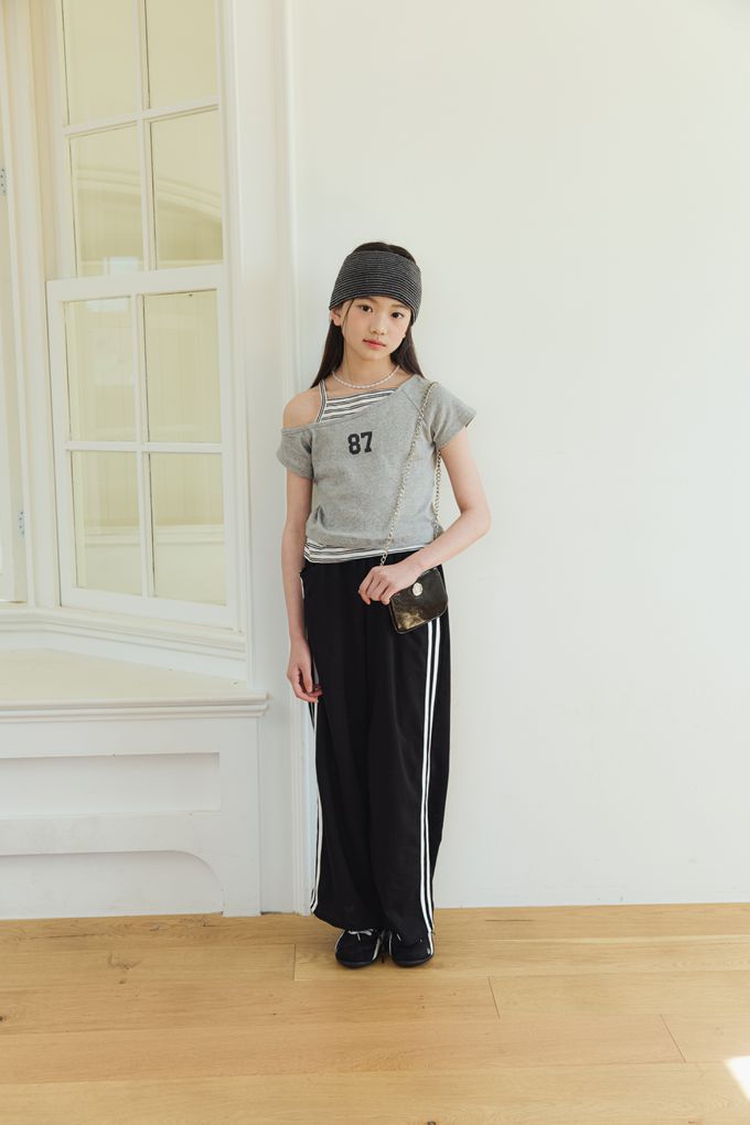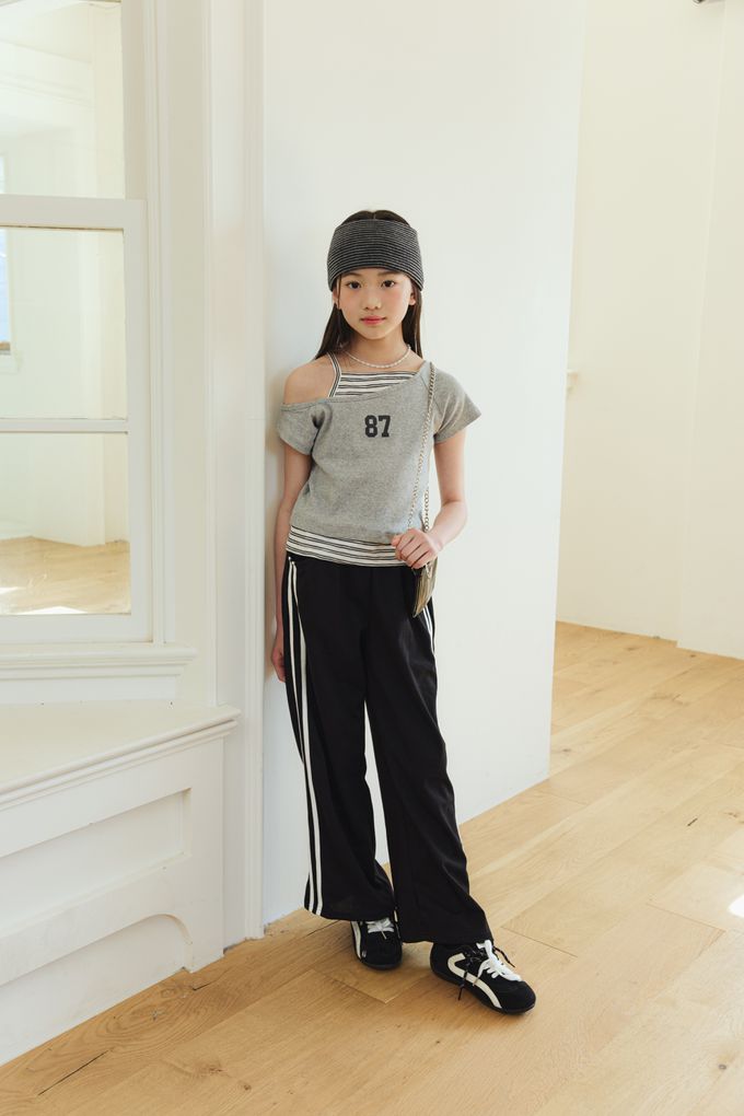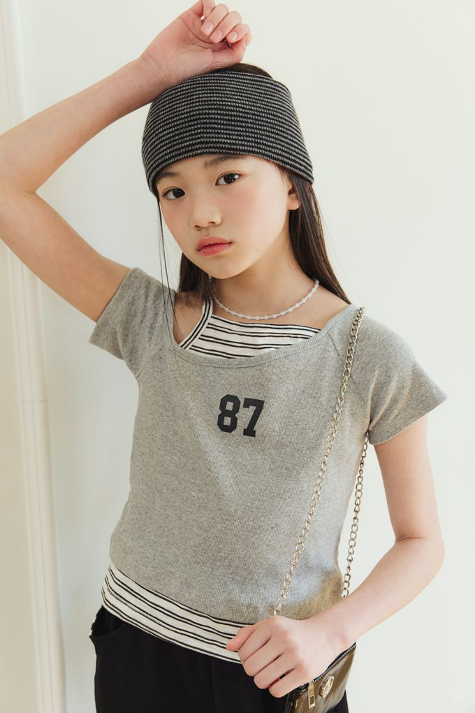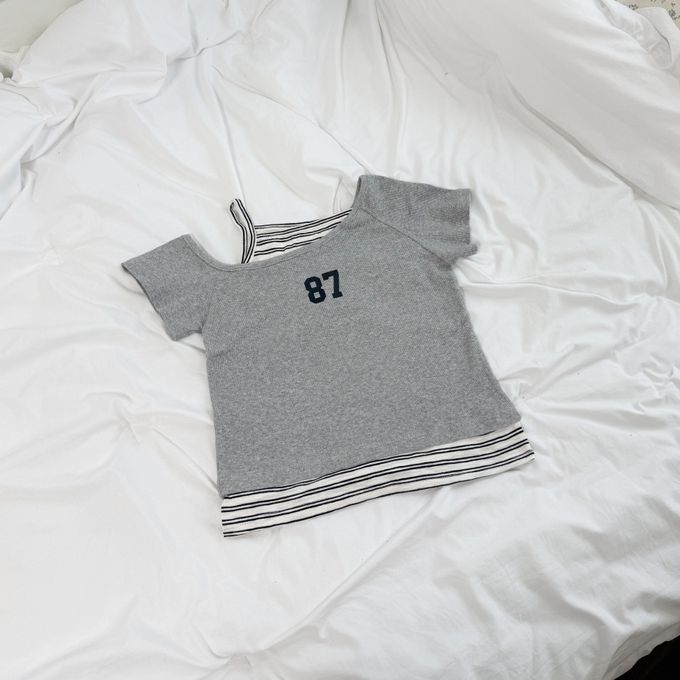 韓國南大門童裝 - sm2 Y2K假兩件露肩造型短袖上衣-灰