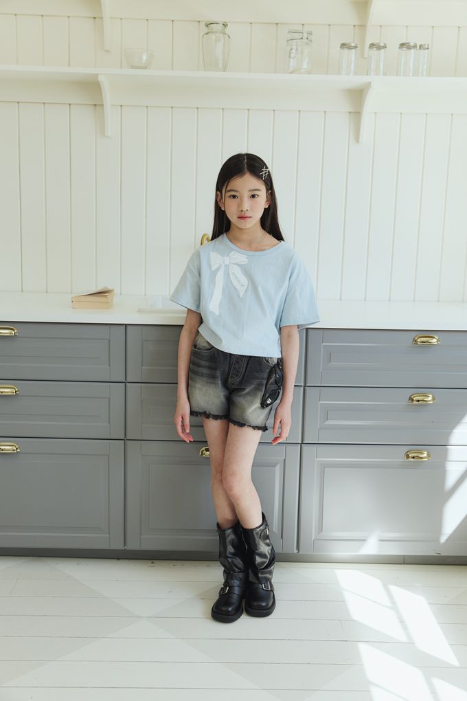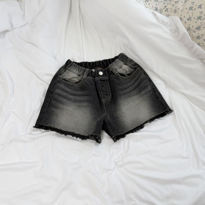 韓國南大門童裝 - sm2 鬆緊腰復古水洗刷色抽鬚短褲-黑灰