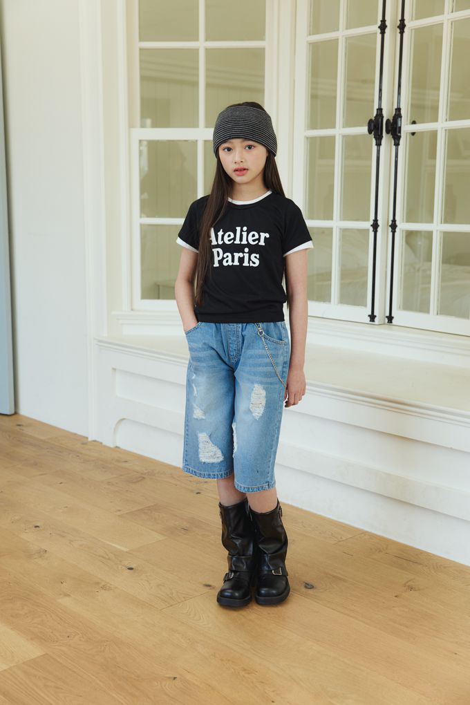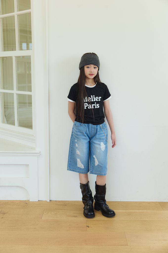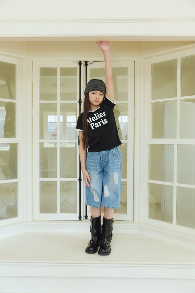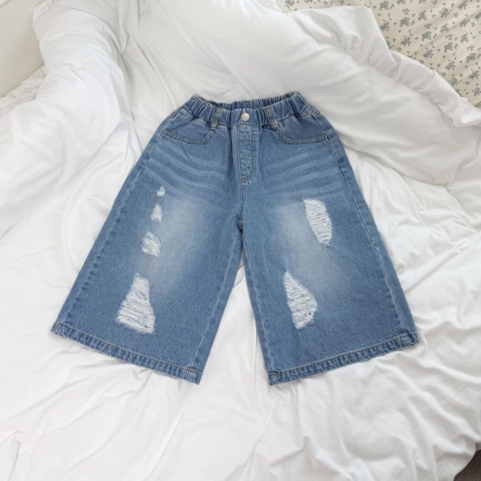 韓國南大門童裝 - sm2 鬆緊腰潮流破壞感五分褲-中青