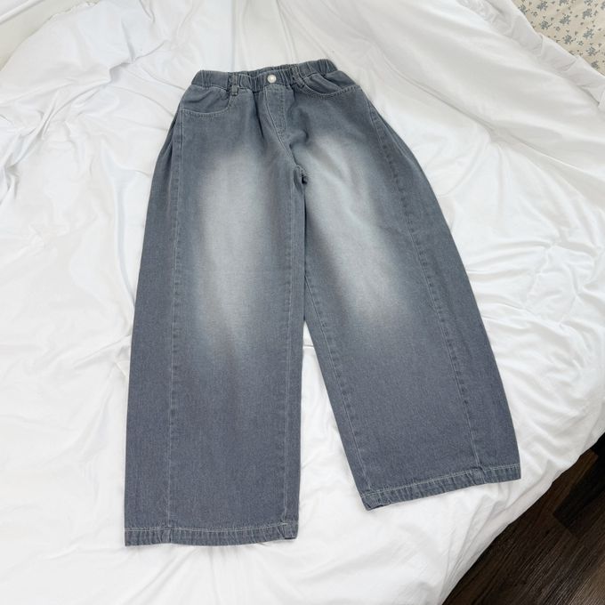 韓國南大門童裝 - sm2 鬆緊腰丹寧錐形彎刀褲-灰