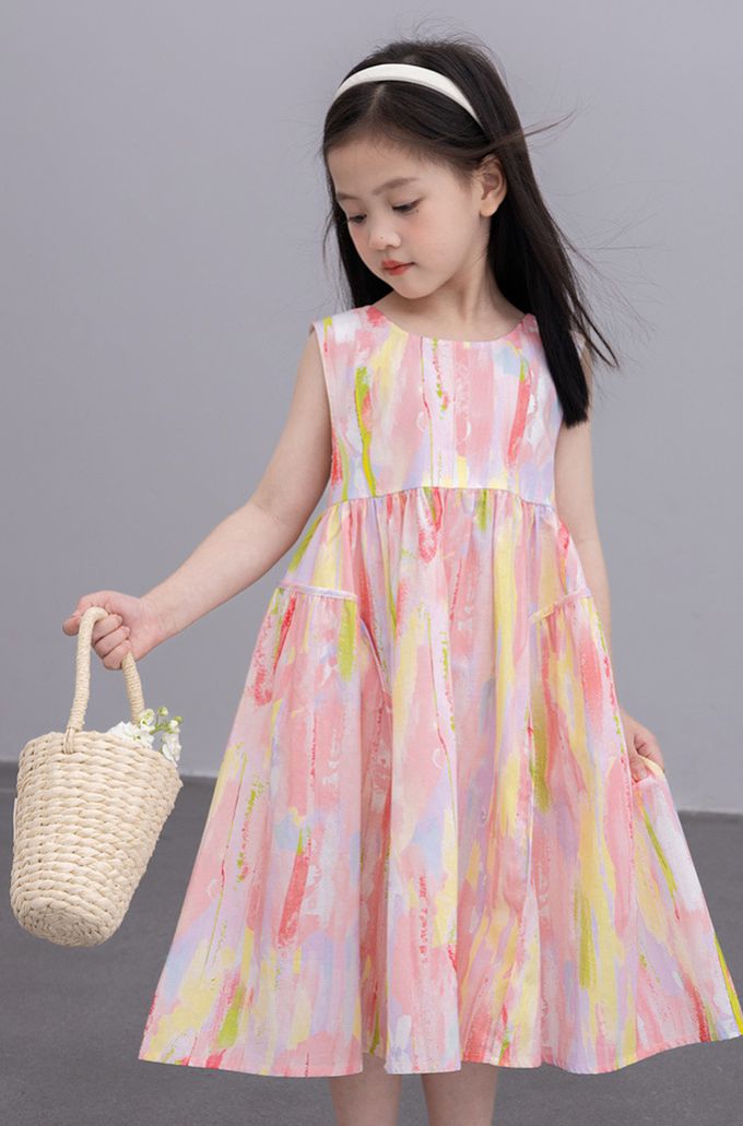 • 油畫風格無袖洋裝,絢麗多彩超吸睛
