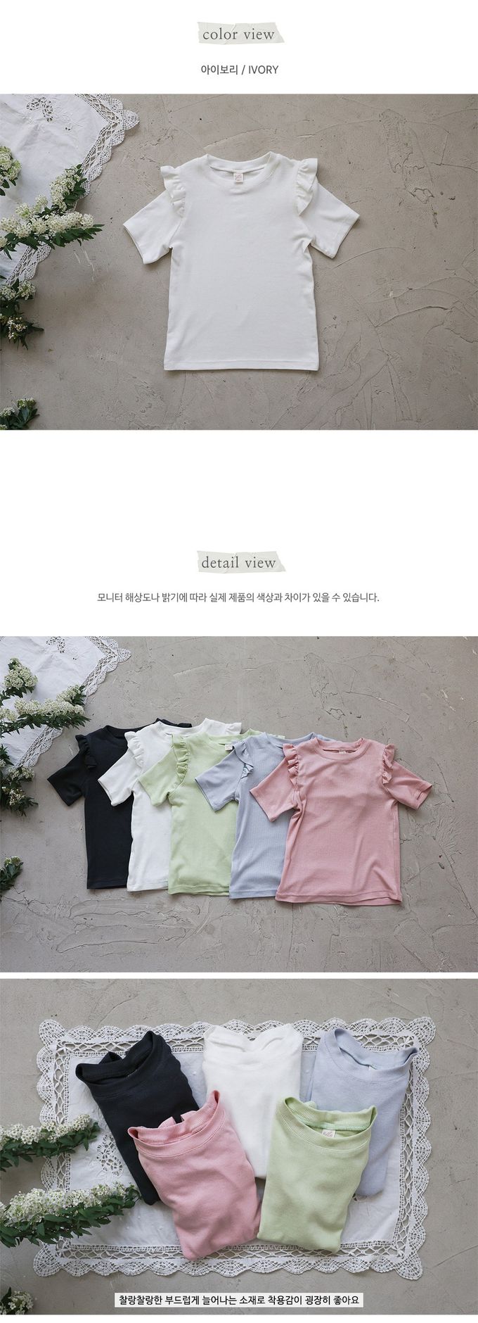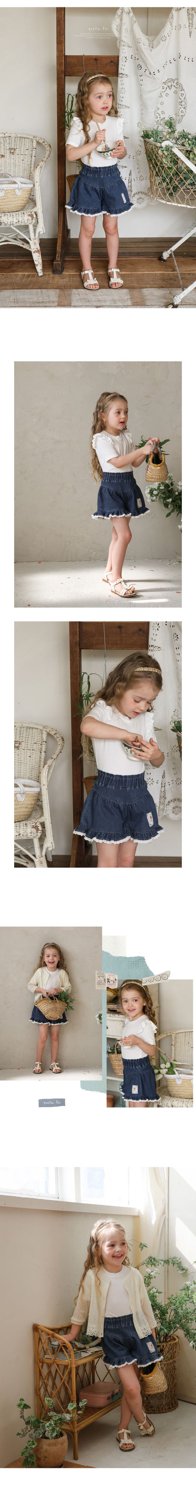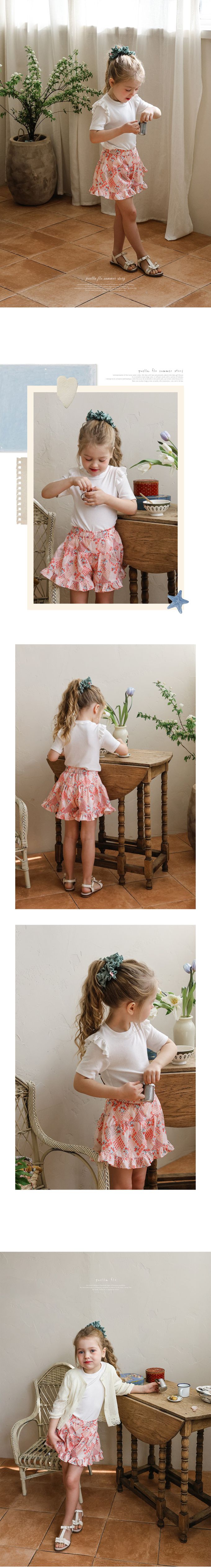 韓國南大門童裝 - Puellaflo 小荷葉裝飾短袖上衣-白