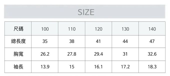 1. 尺寸表單位皆為公分(cm),實際尺寸會因布料彈性、水洗、測量起迄點等因素略有誤差。