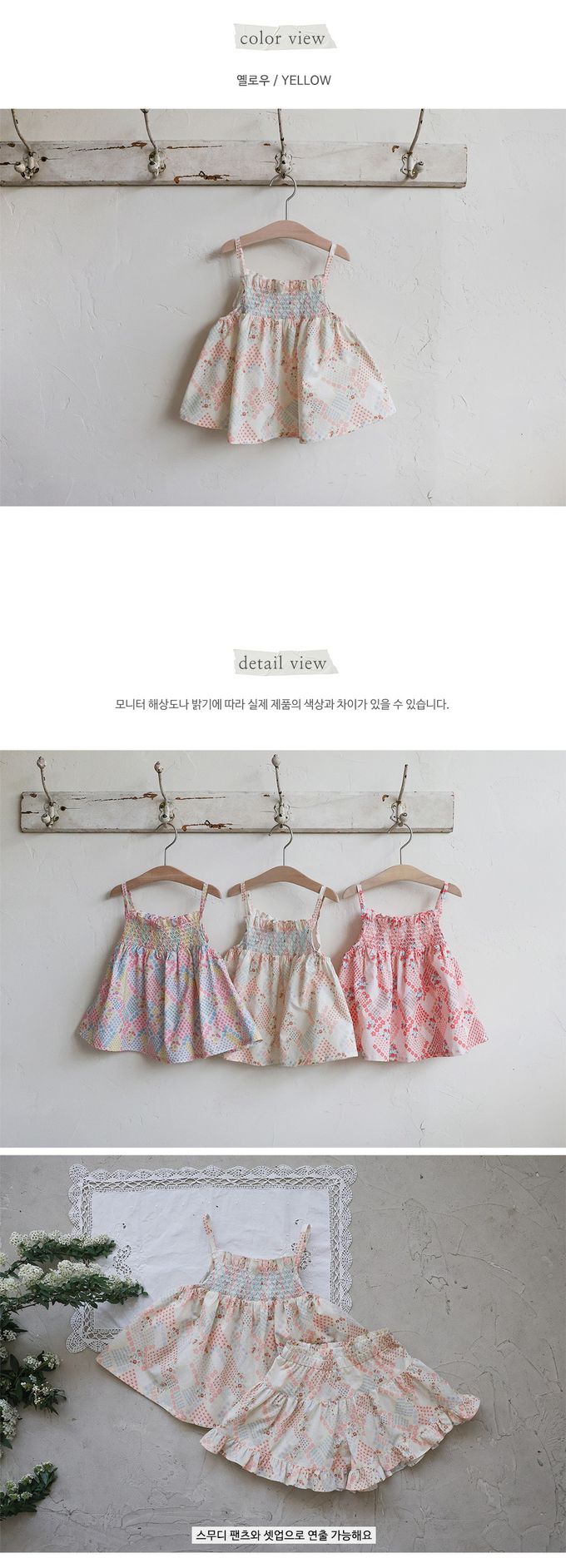 韓國南大門童裝 - Puellaflo 繽紛花漾細肩帶背心上衣-淺黃