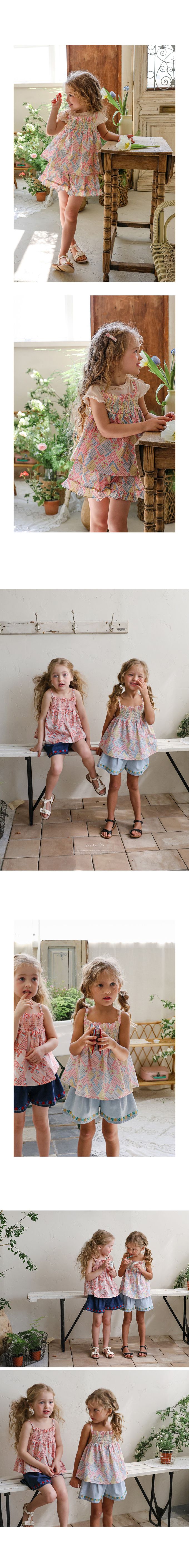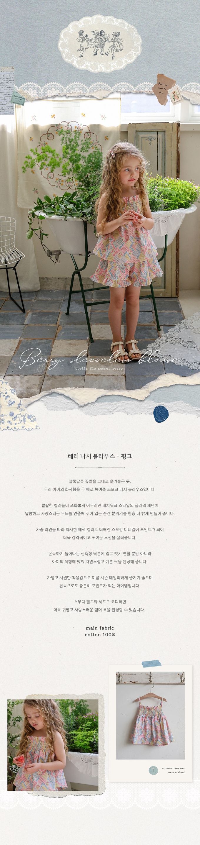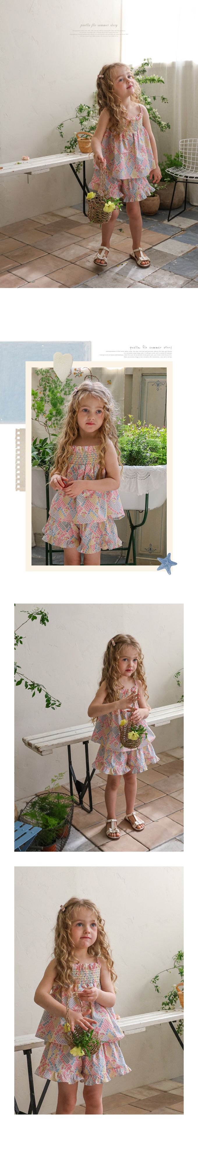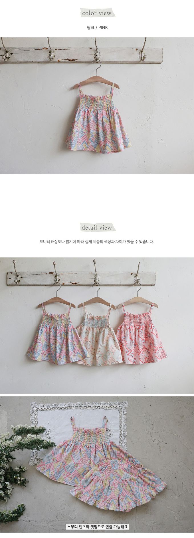 韓國南大門童裝 - Puellaflo 繽紛花漾細肩帶背心上衣-桃粉