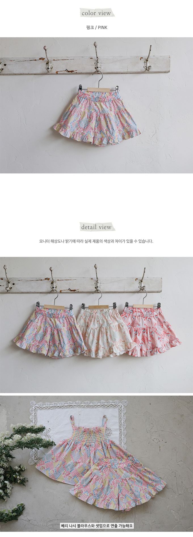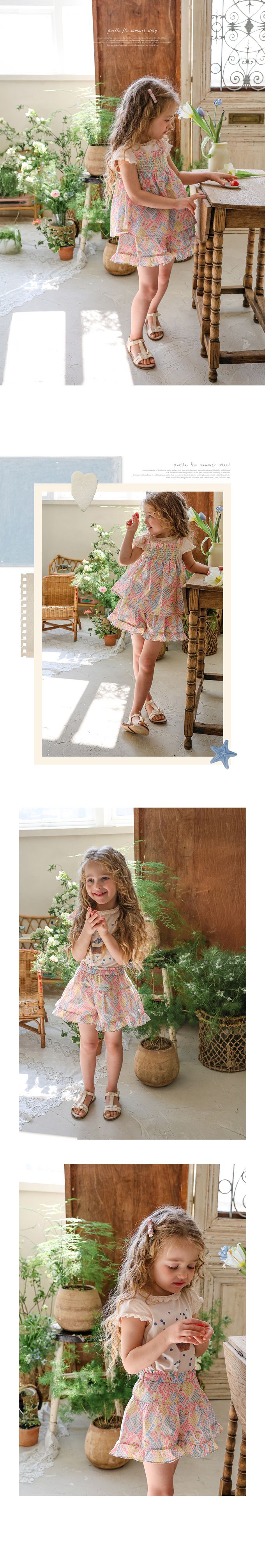 韓國南大門童裝 - Puellaflo 鬆緊腰繽紛花漾荷葉擺短褲-桃粉