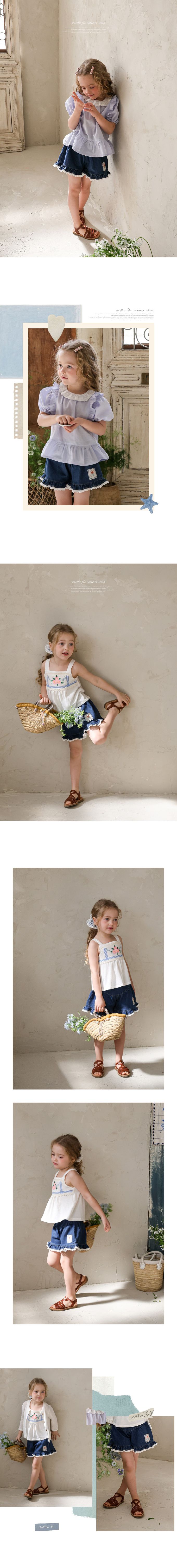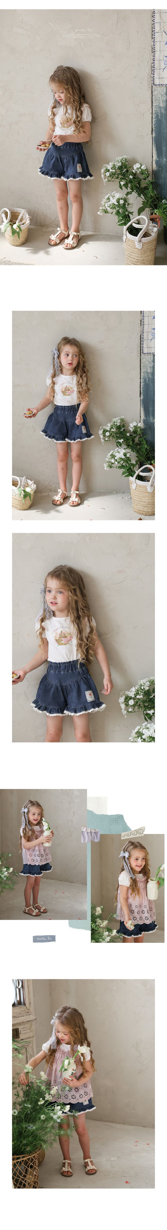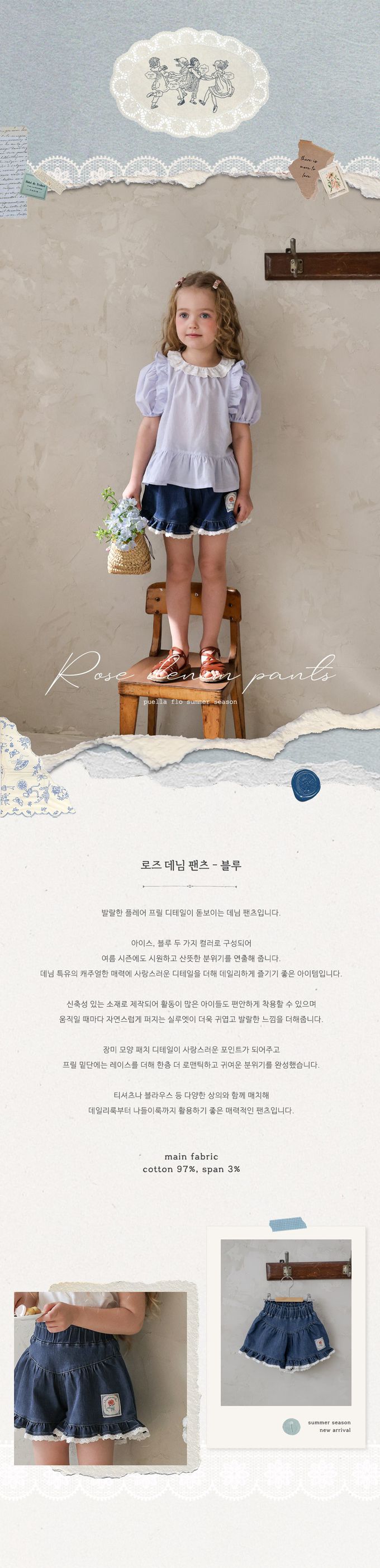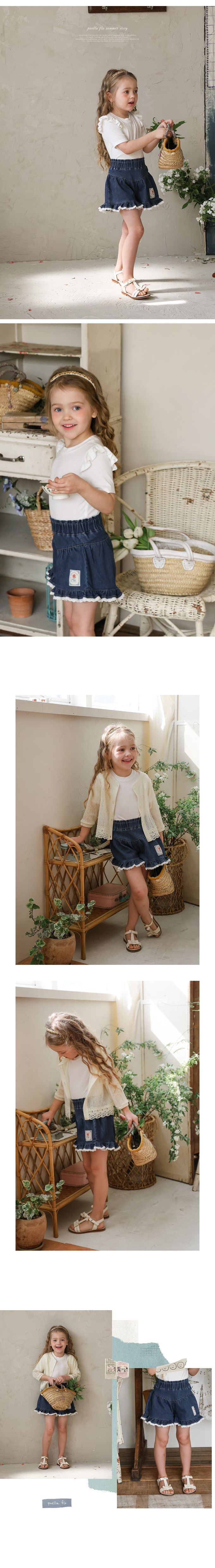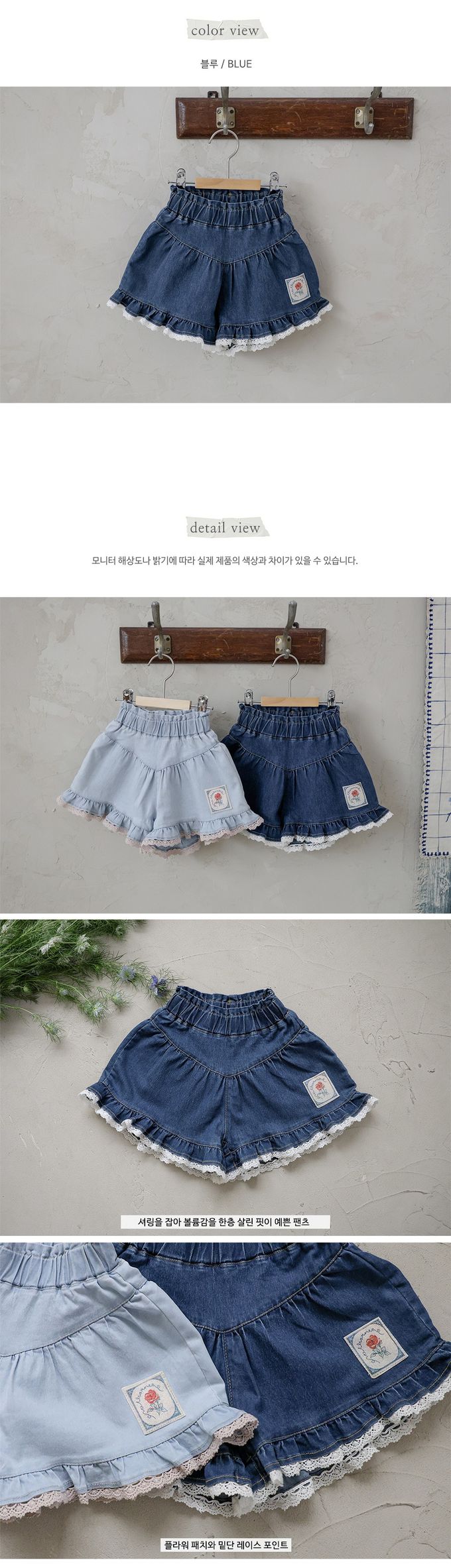 韓國南大門童裝 - Puellaflo 鬆緊腰蕾絲荷葉擺花邊短褲-深藍