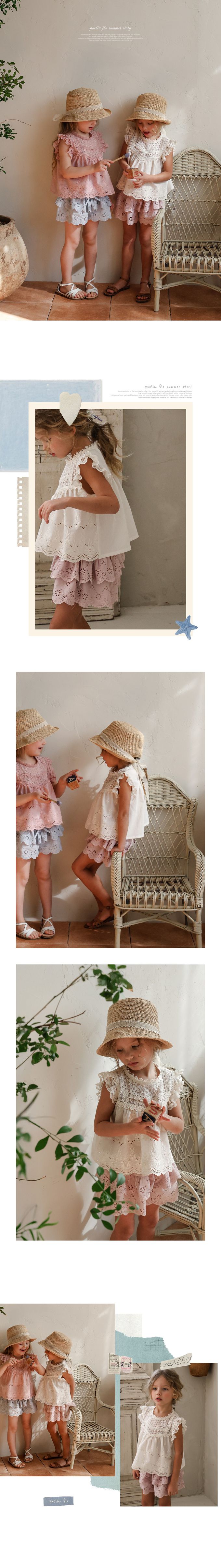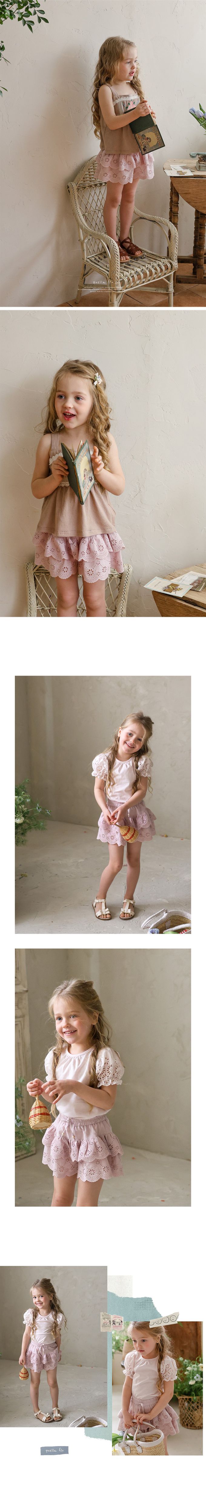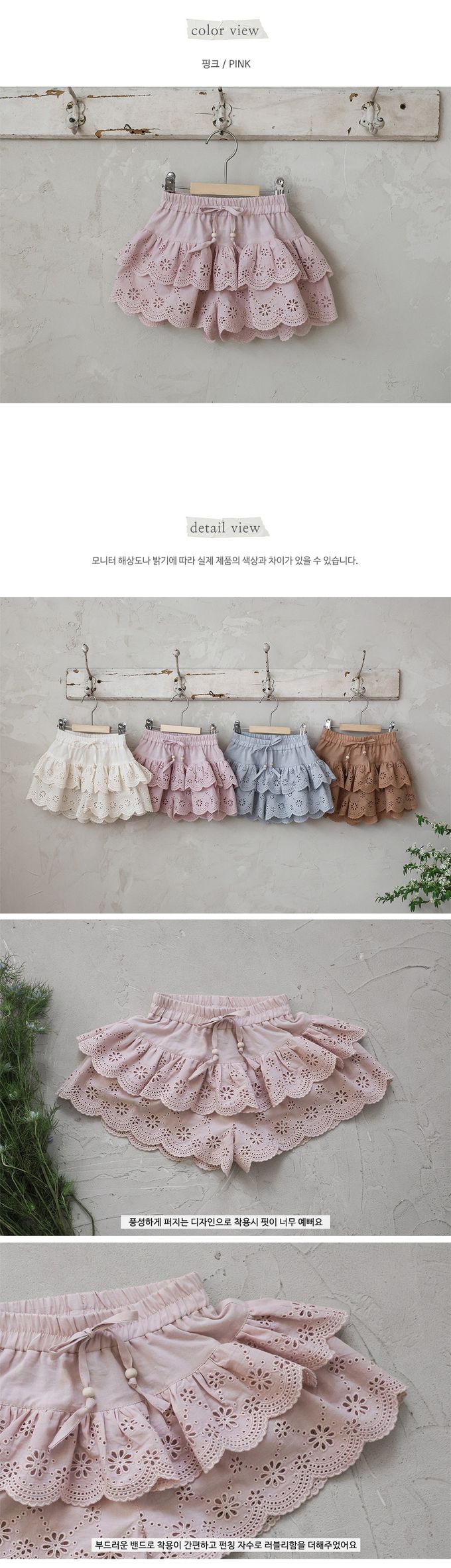 韓國南大門童裝 - Puellaflo 鬆緊腰花形鏤空層次裙褲-粉