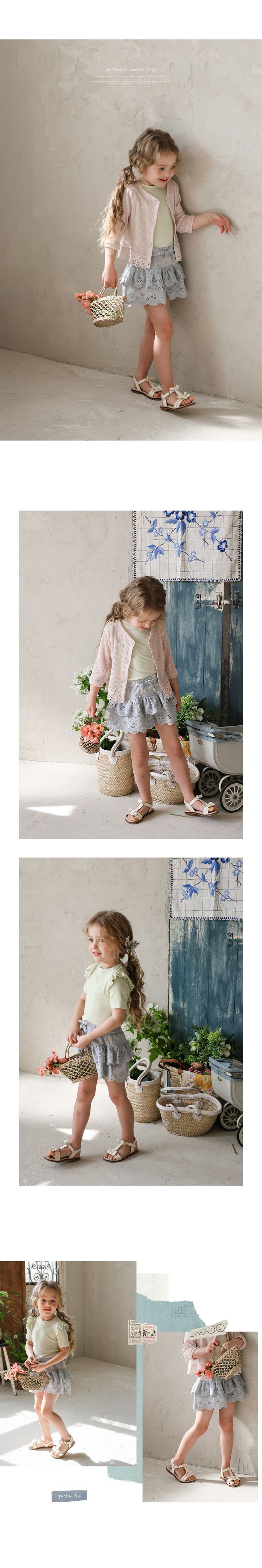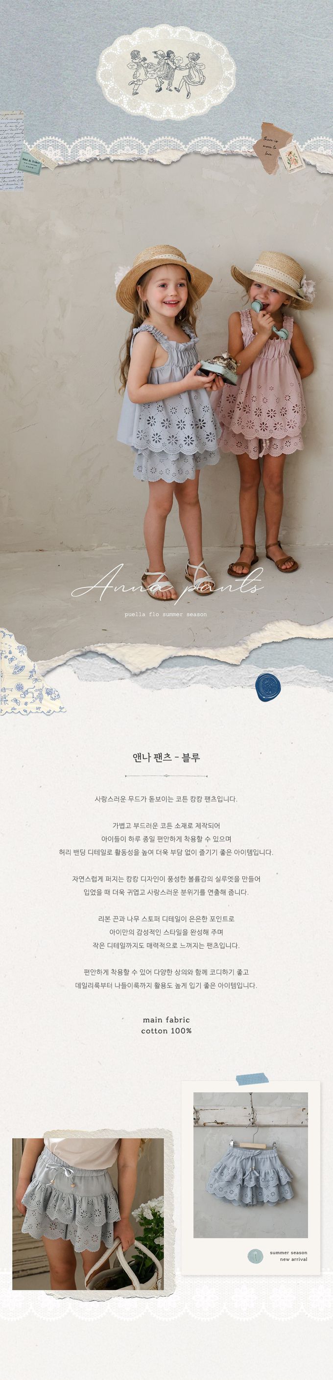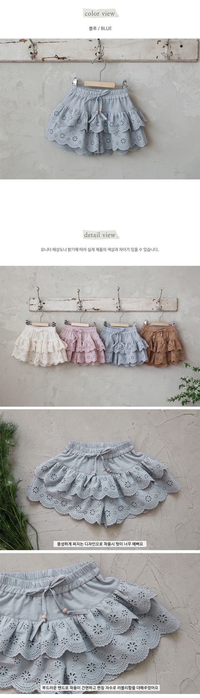 韓國南大門童裝 - Puellaflo 鬆緊腰花形鏤空層次裙褲-淺灰藍