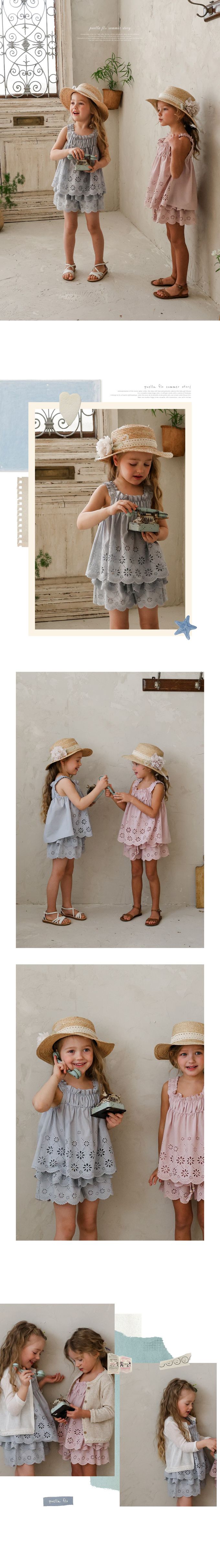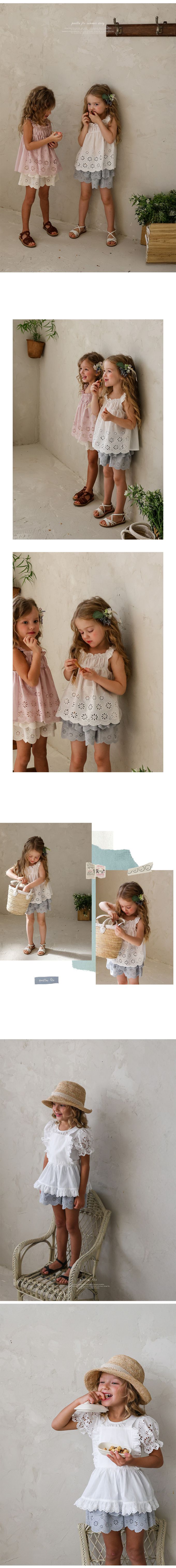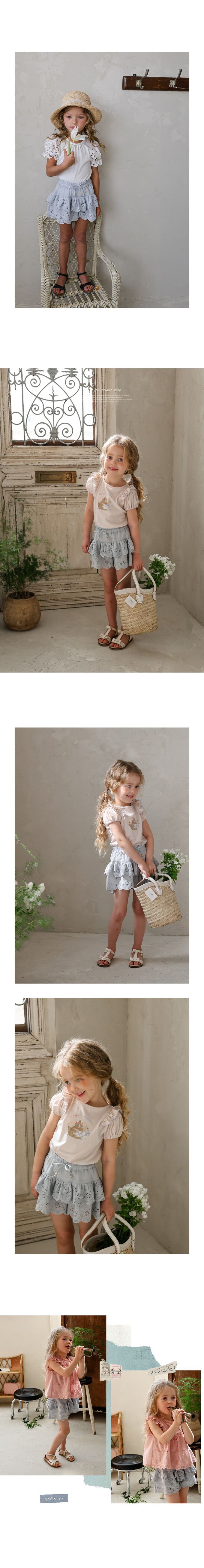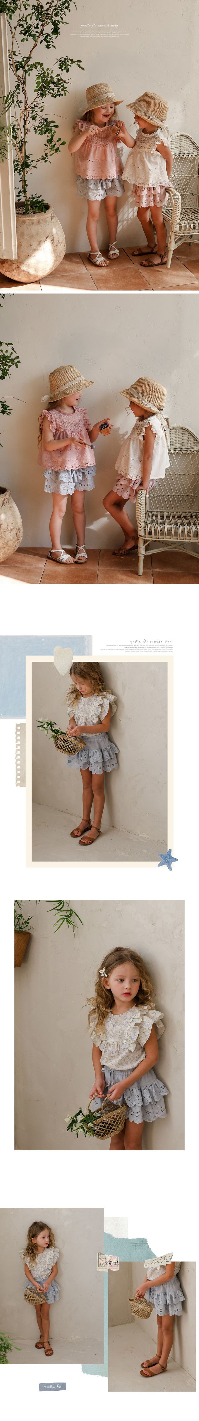 韓國南大門童裝 - Puellaflo 鬆緊腰花形鏤空層次裙褲-淺灰藍