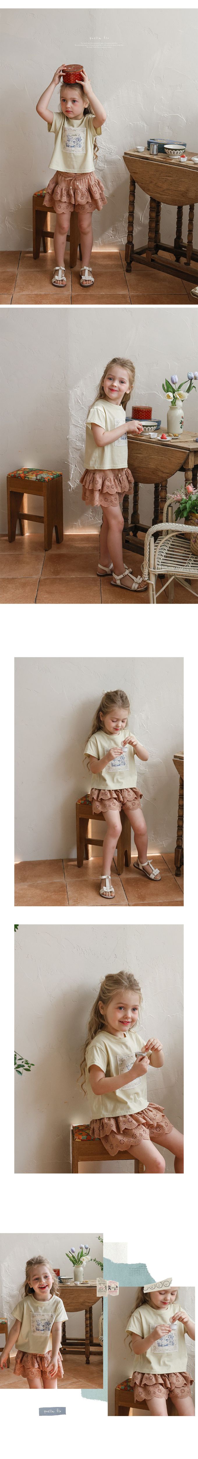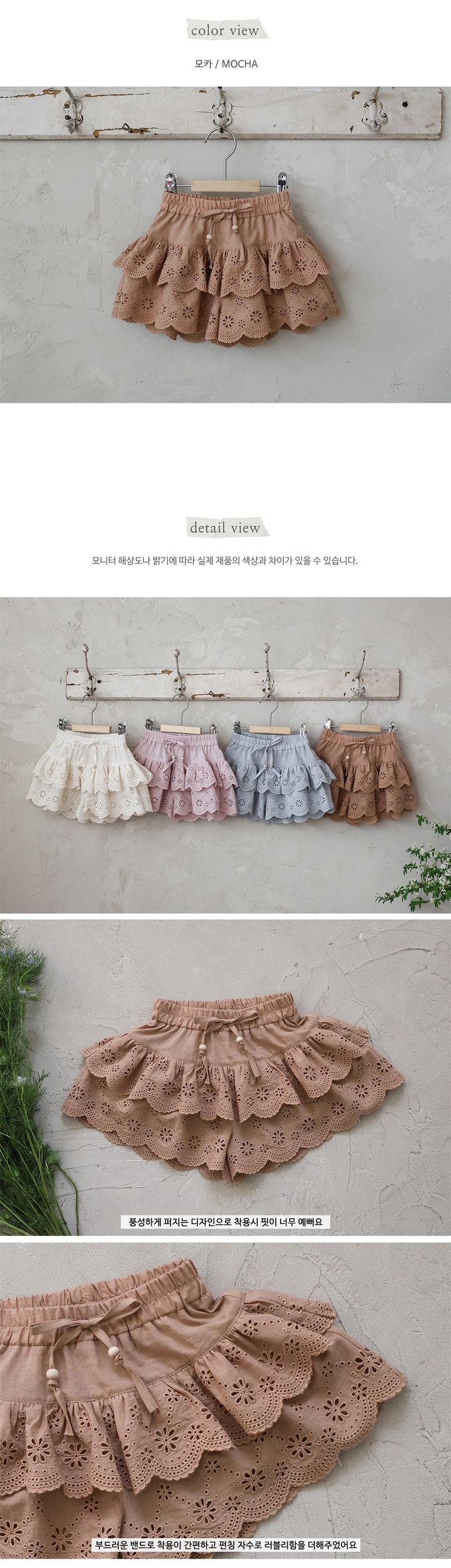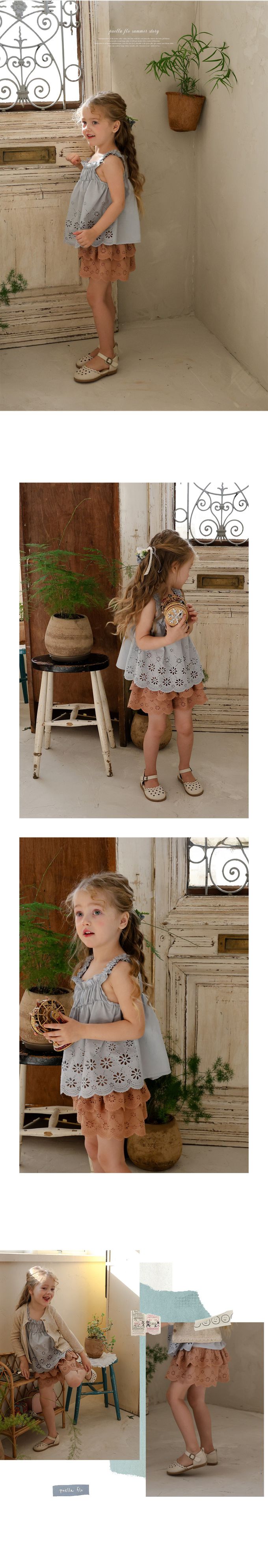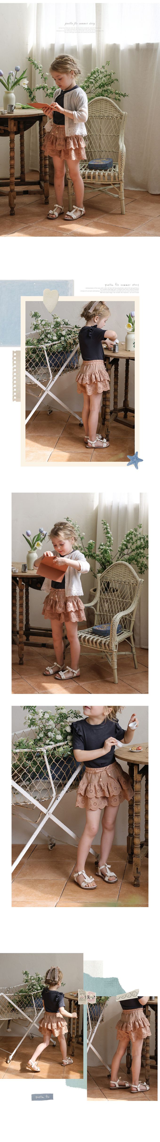 韓國南大門童裝 - Puellaflo 鬆緊腰花形鏤空層次裙褲-焦糖咖
