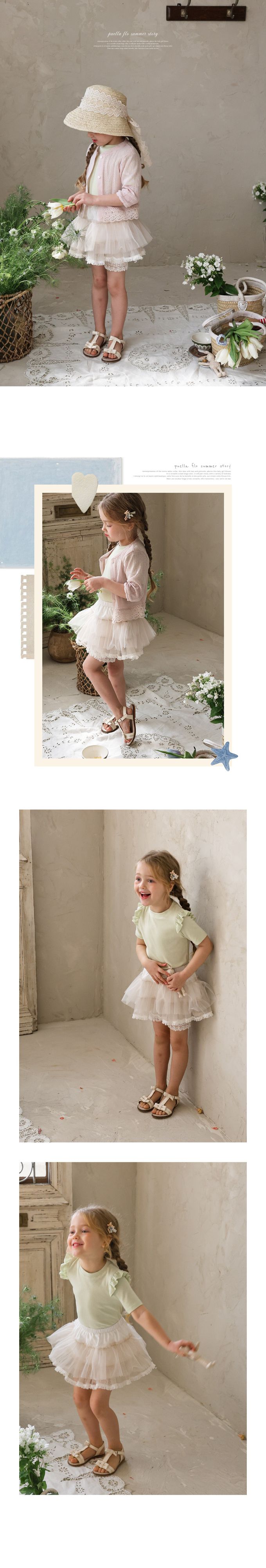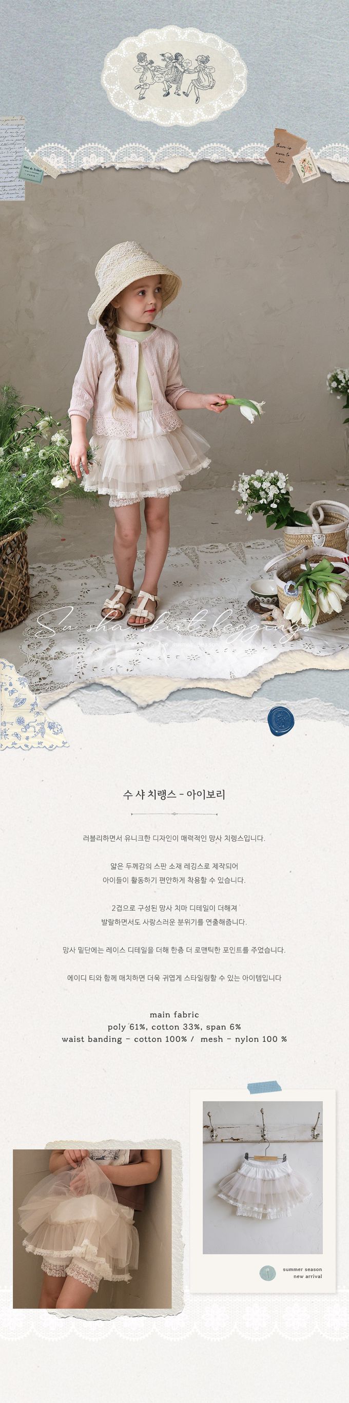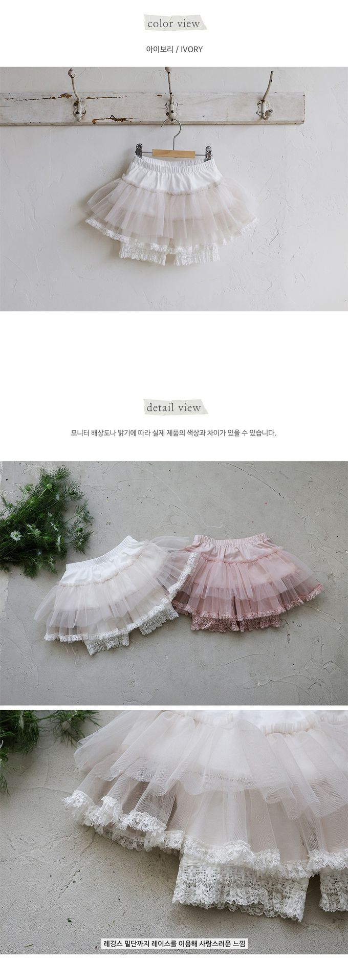 韓國南大門童裝 - Puellaflo 鬆緊腰層次蓬蓬蕾絲內搭褲裙-象牙白
