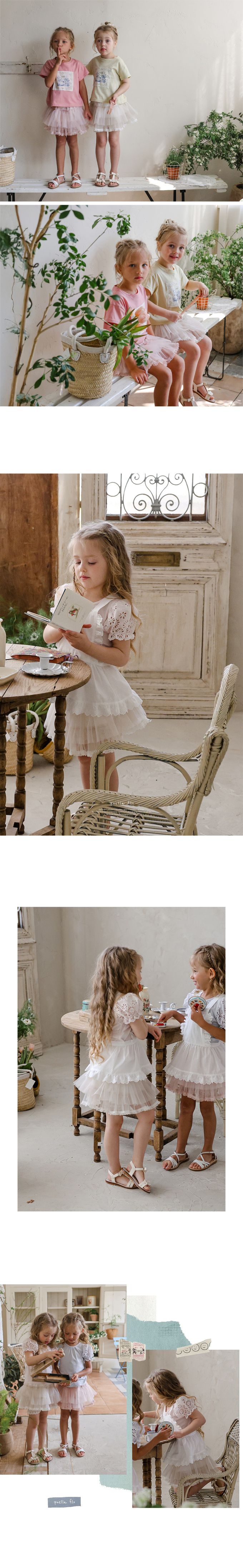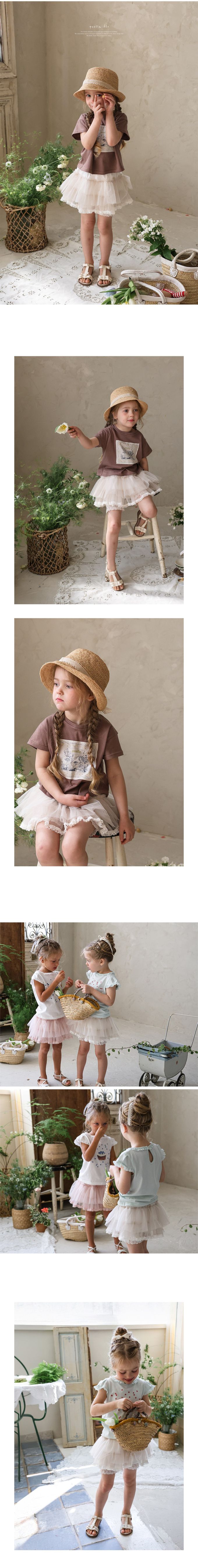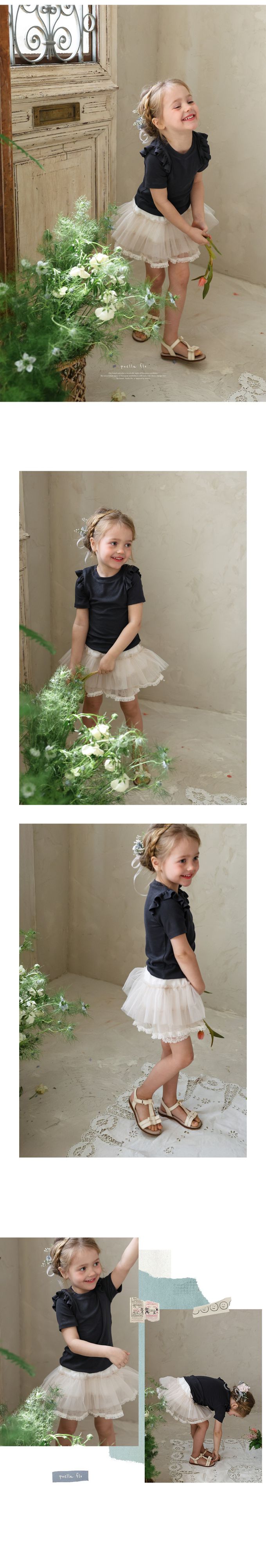 韓國南大門童裝 - Puellaflo 鬆緊腰層次蓬蓬蕾絲內搭褲裙-象牙白