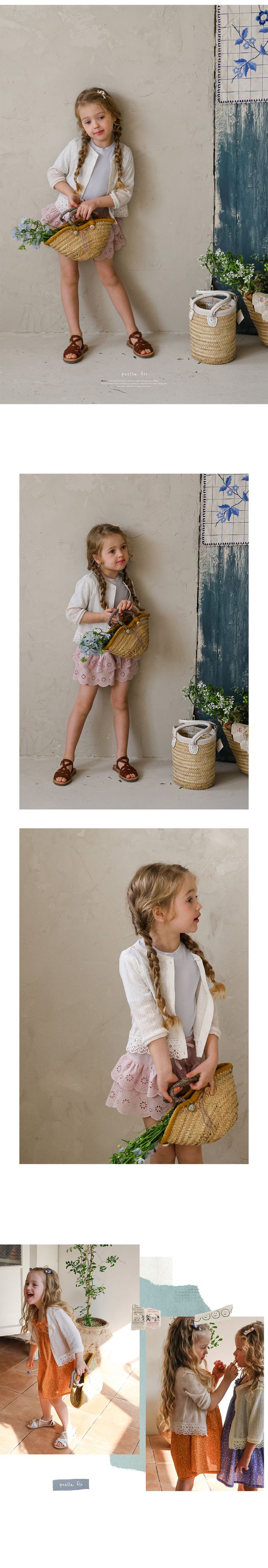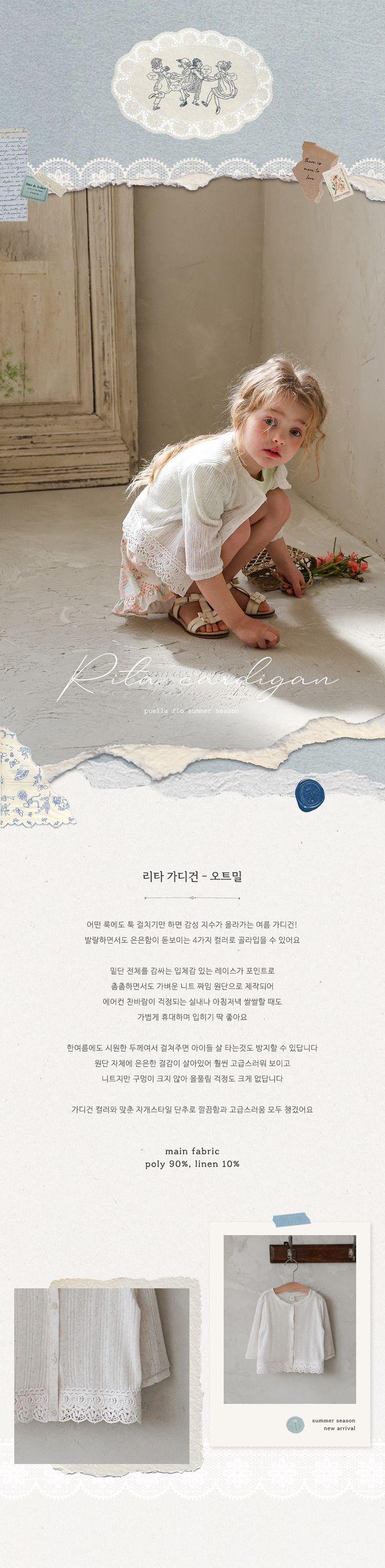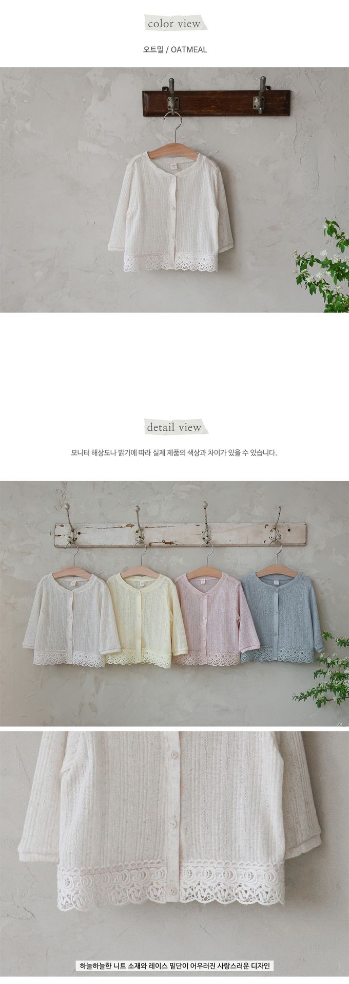 韓國南大門童裝 - Puellaflo 清爽微透感7分袖針織外套-燕麥米白