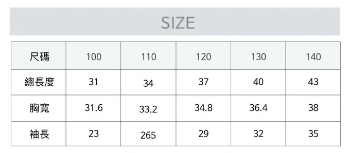 1. 尺寸表單位皆為公分(cm),實際尺寸會因布料彈性、水洗、測量起迄點等因素略有誤差。