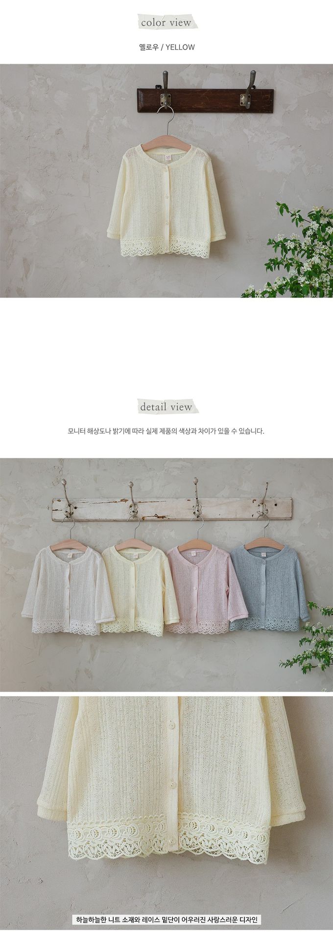 韓國南大門童裝 - Puellaflo 清爽微透感7分袖針織外套-淺黃