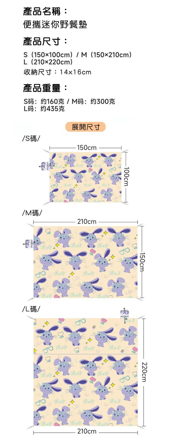 品名:便儶迷你口袋野餐墊 L碼 (210x220cm)