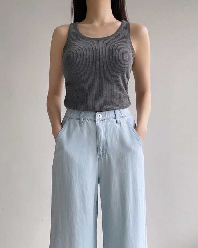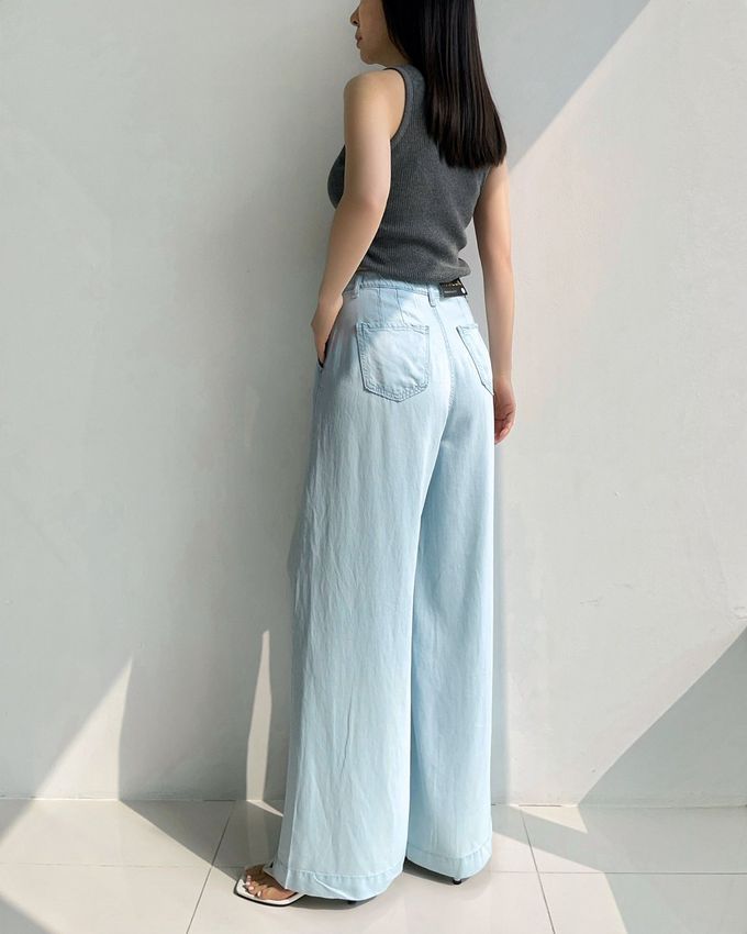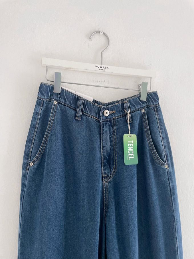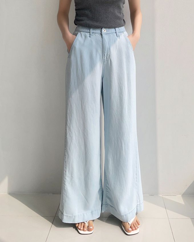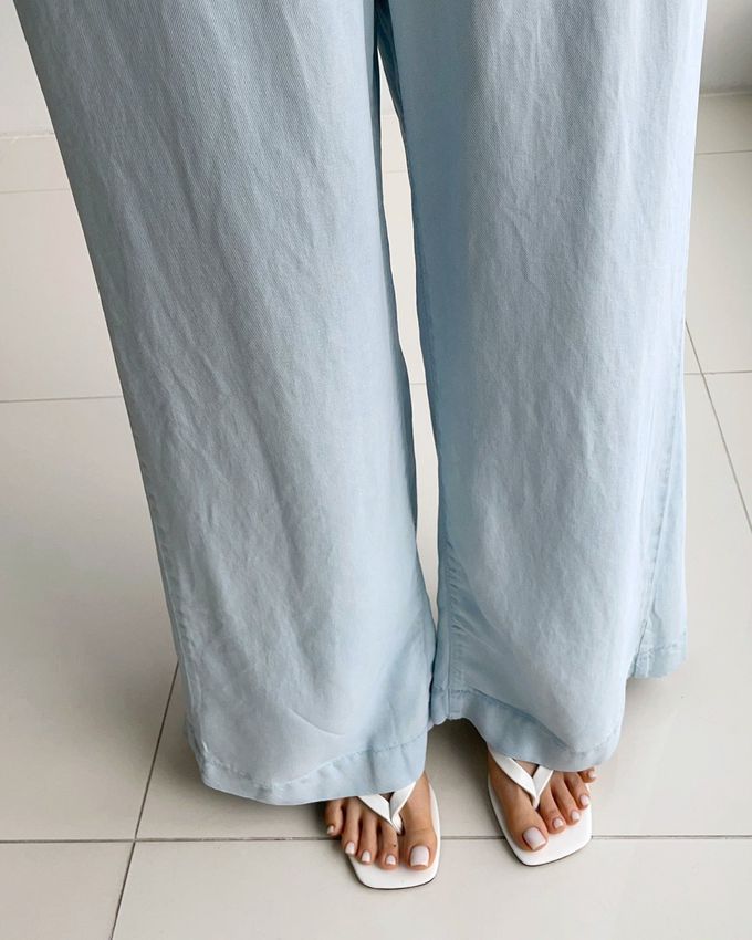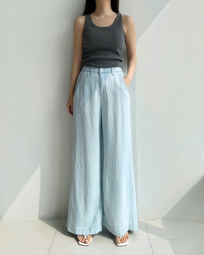 韓國女裝連線 - Howluk 鬆緊腰100%天絲柔軟寬鬆落地褲-淺藍