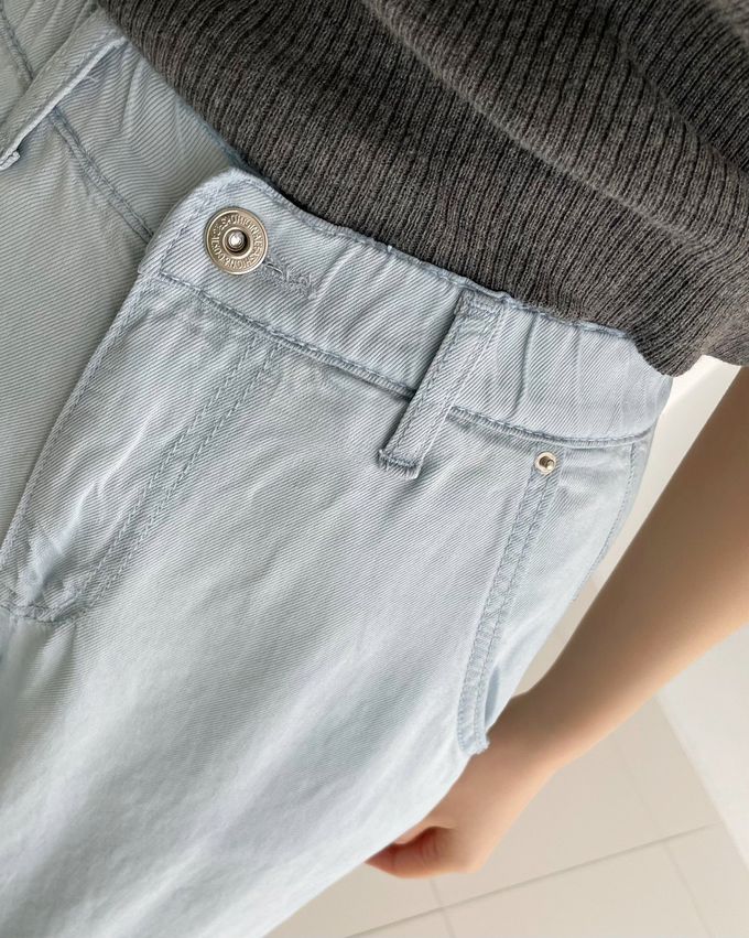 牛仔褲版型好看歸好看,但舒適度真的才是耐不耐穿的唯一指標。他們家的褲子從褲腰就是內縫鬆緊帶,布料也都有彈性,即便是合身款式穿起來也絕對不憋。跑走蹲跳都完全沒問題,追小孩(?)當然也是!