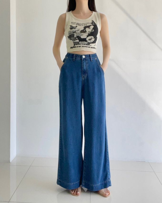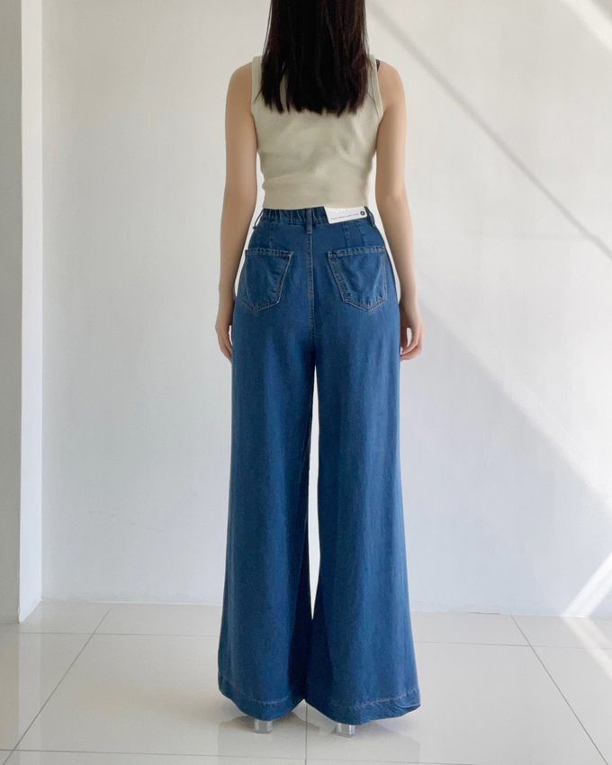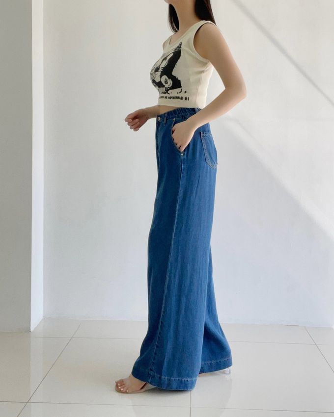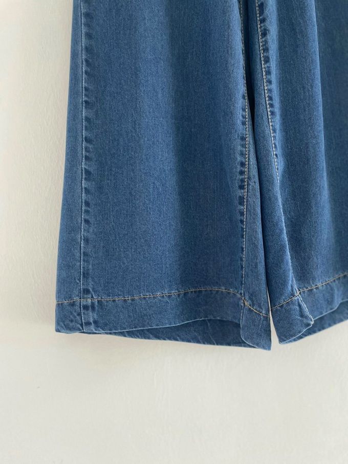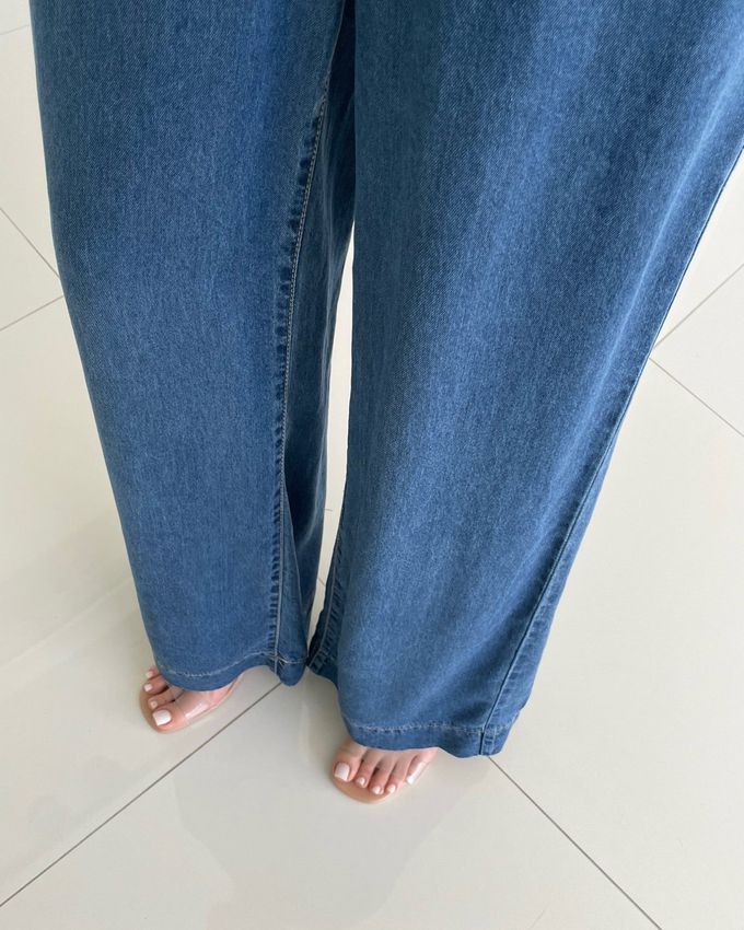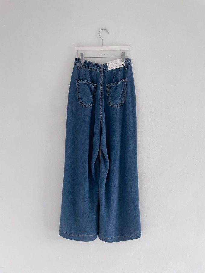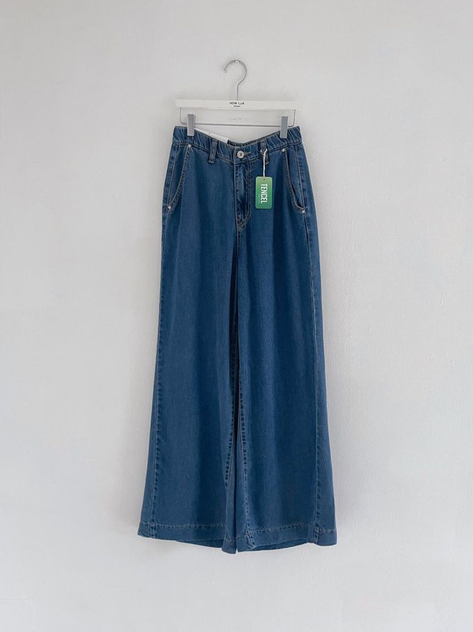 韓國女裝連線 - Howluk 鬆緊腰100%天絲柔軟寬鬆落地褲-深藍