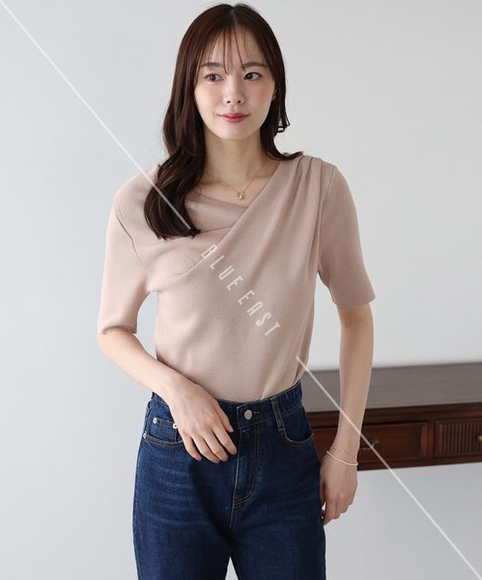 日本 BLUE EAST - 高雅美型垂墜V領針織短袖上衣-粉紅