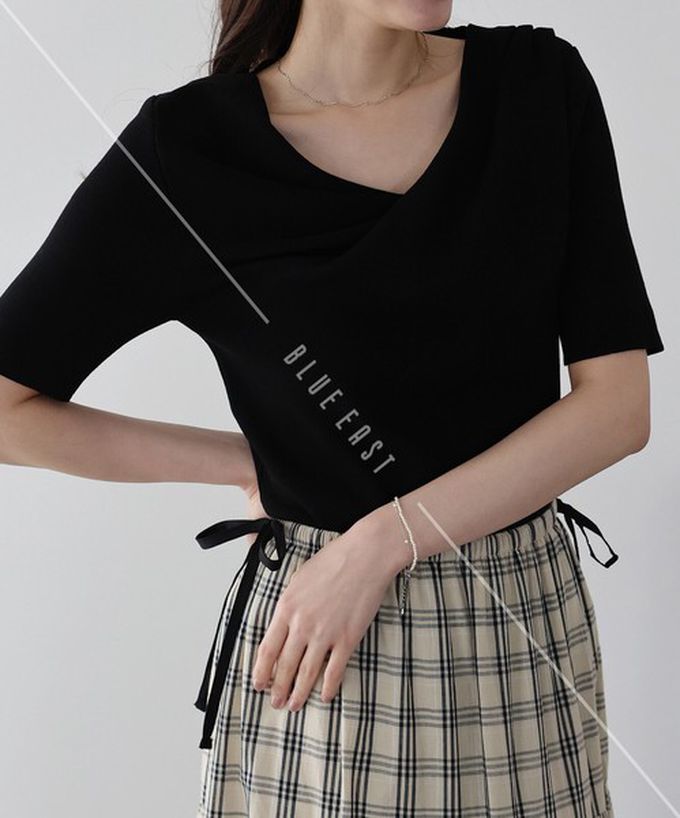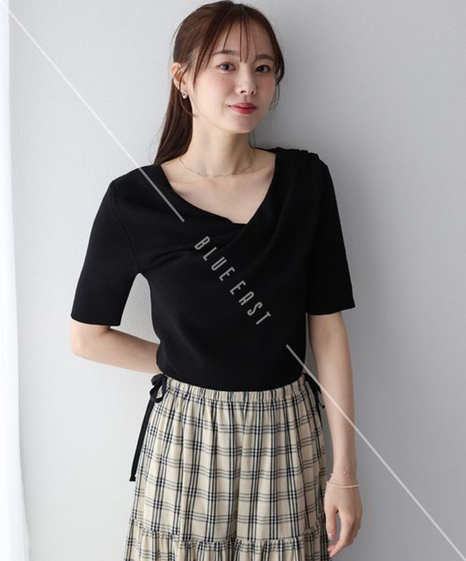 日本 BLUE EAST - 高雅美型垂墜V領針織短袖上衣-黑