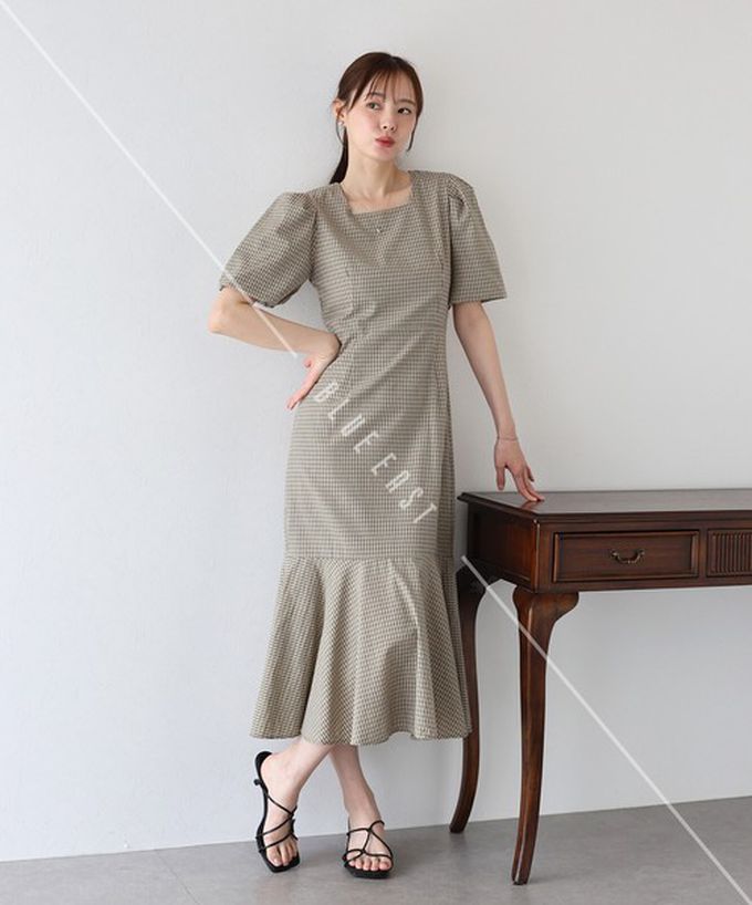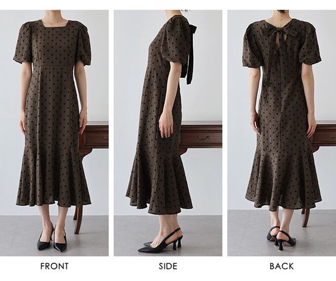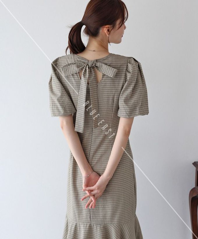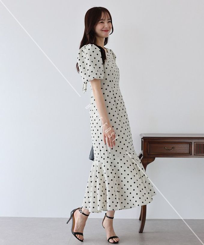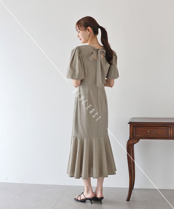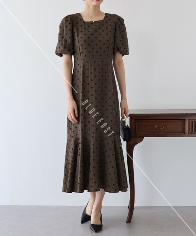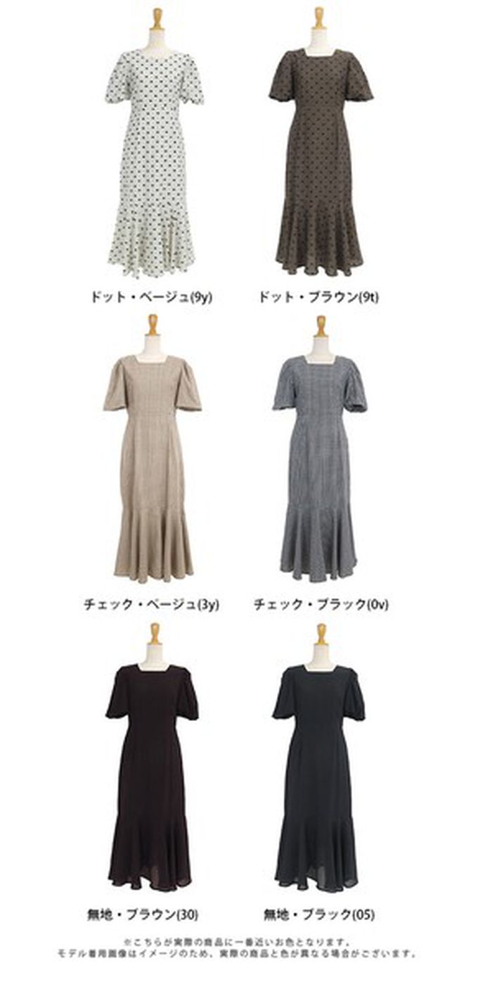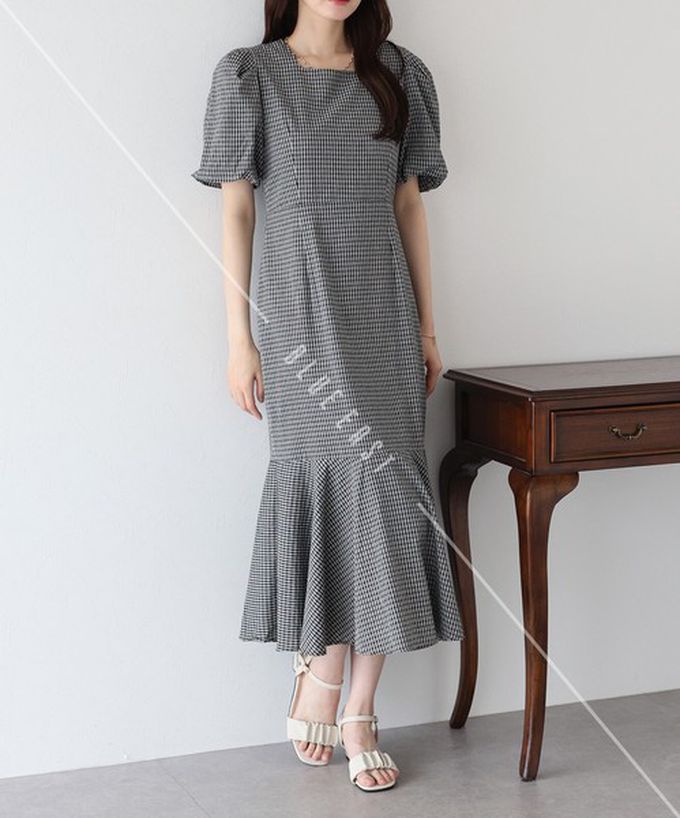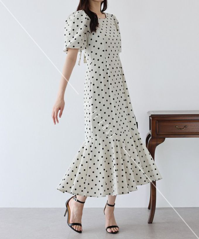 • 品名:優雅方領後綁帶泡泡袖魚尾洋裝
