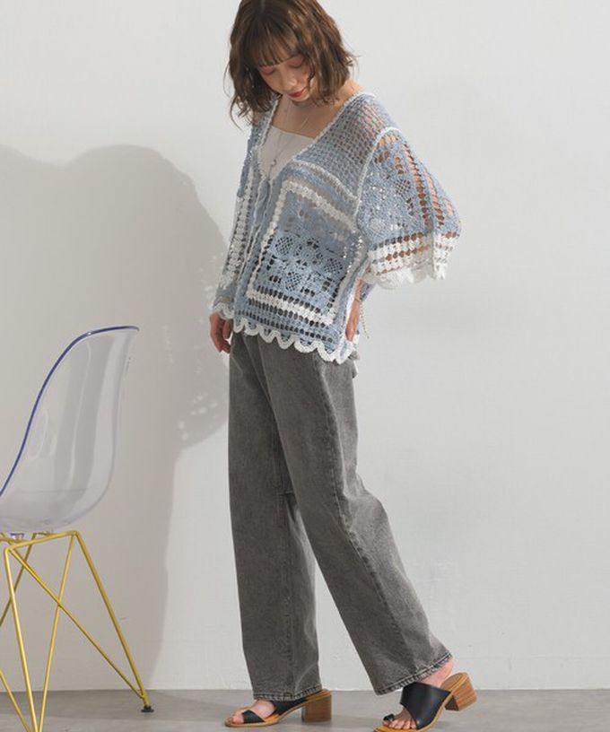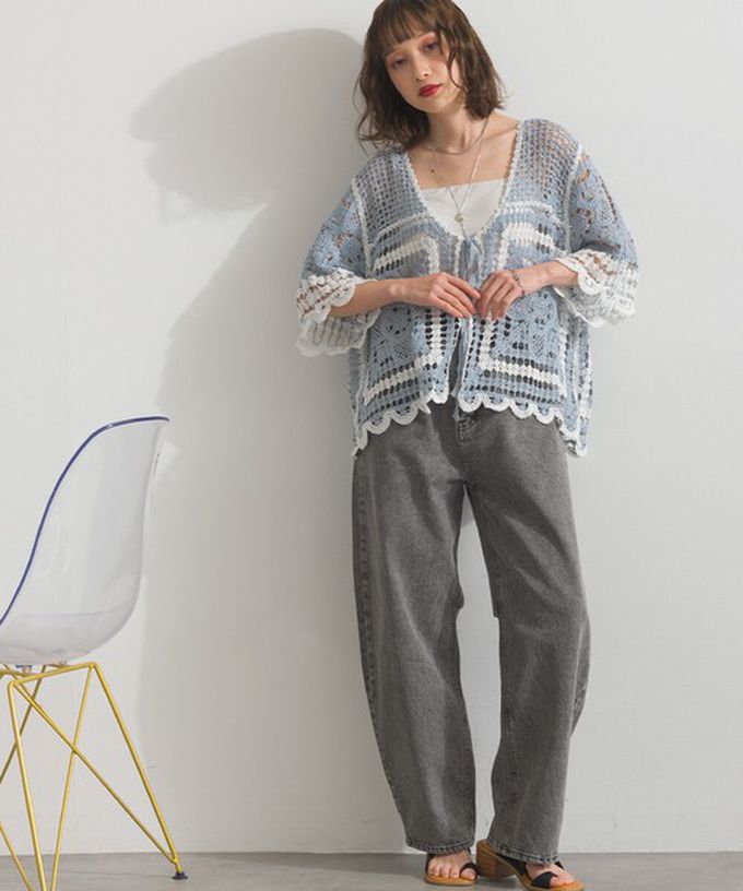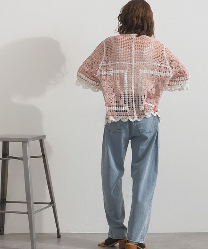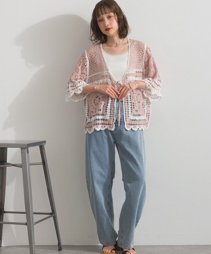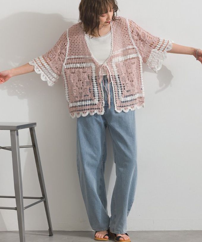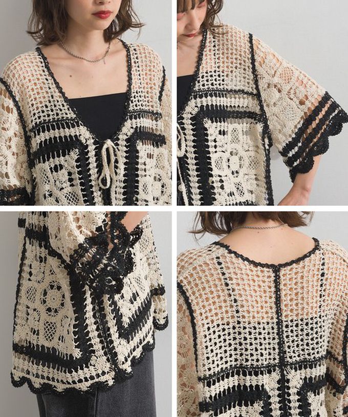 • 品名:纖細扇形鉤針編織綁帶開襟衫