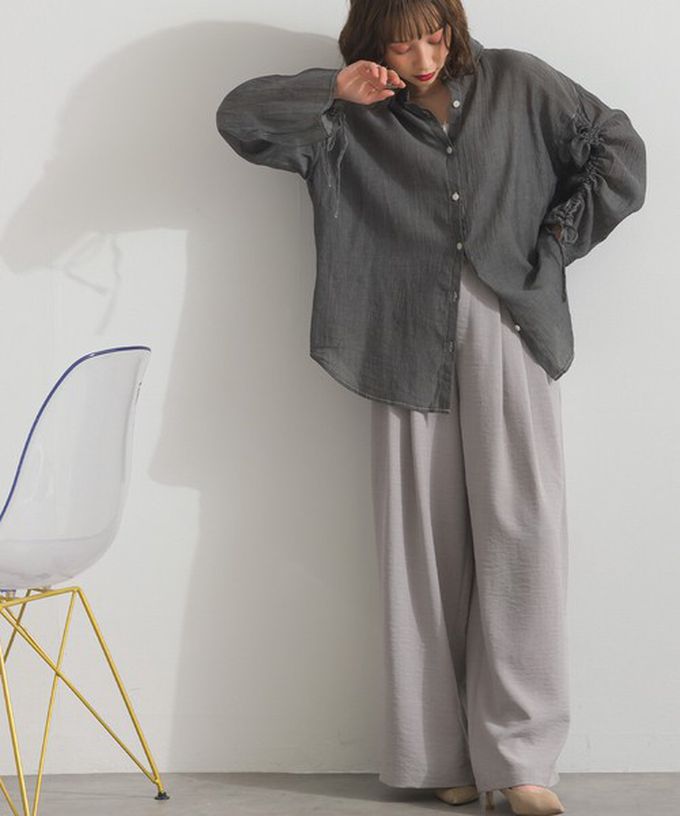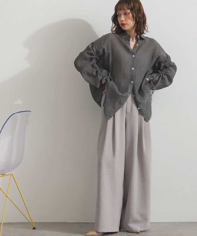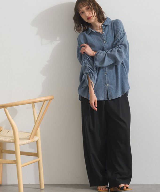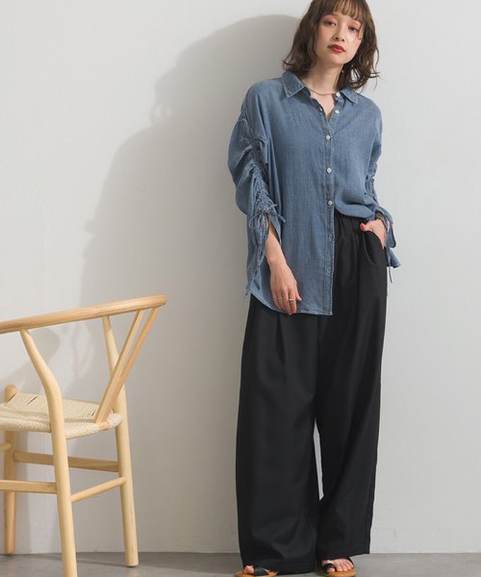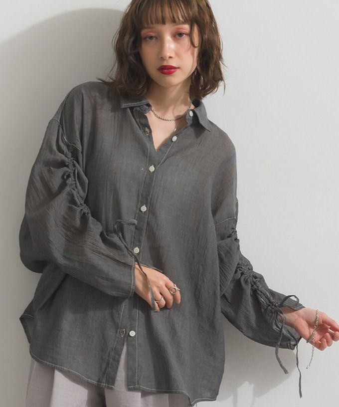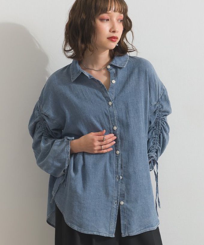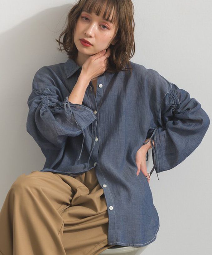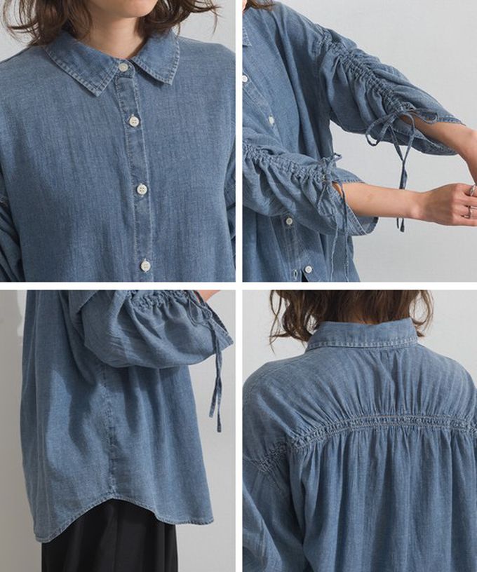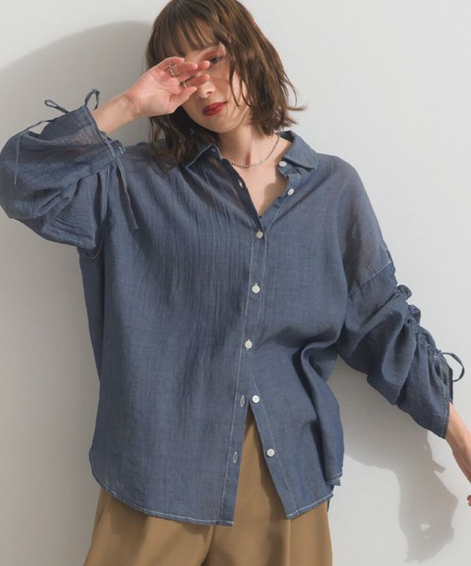 • 品名:微透膚丹寧風柔美抽繩長袖襯衫