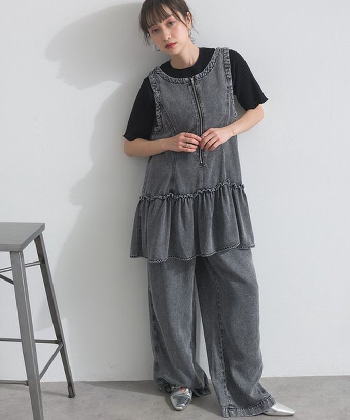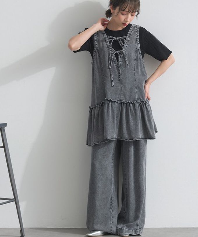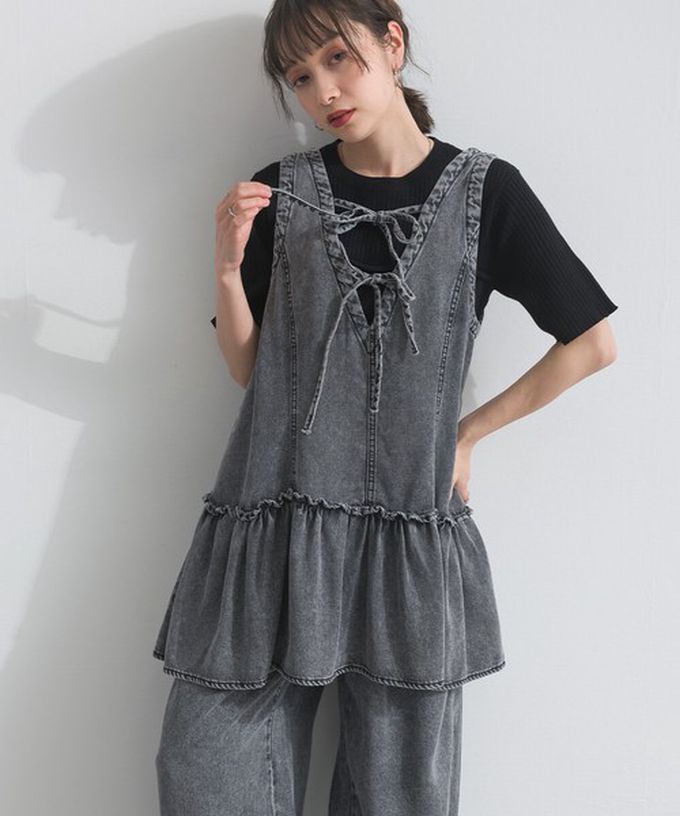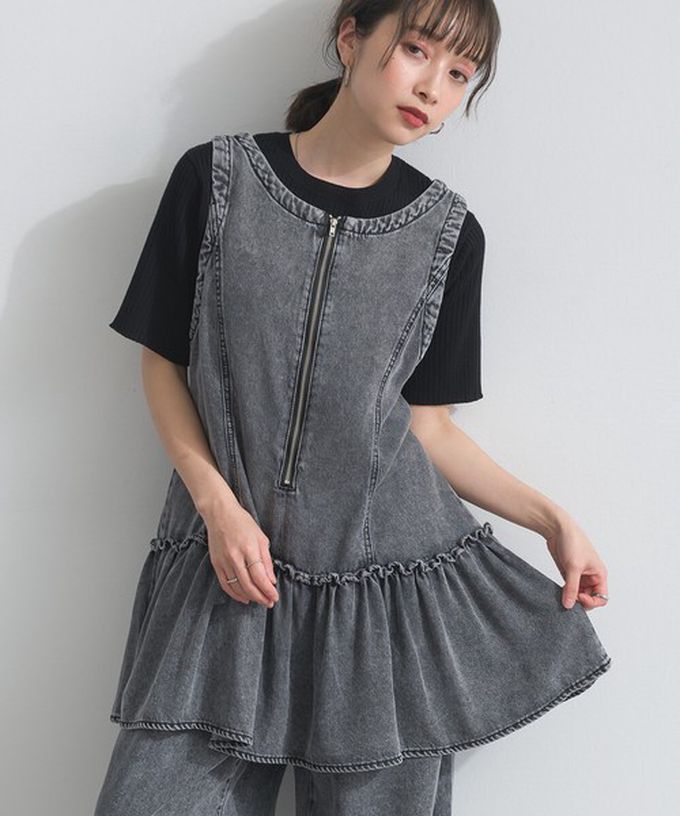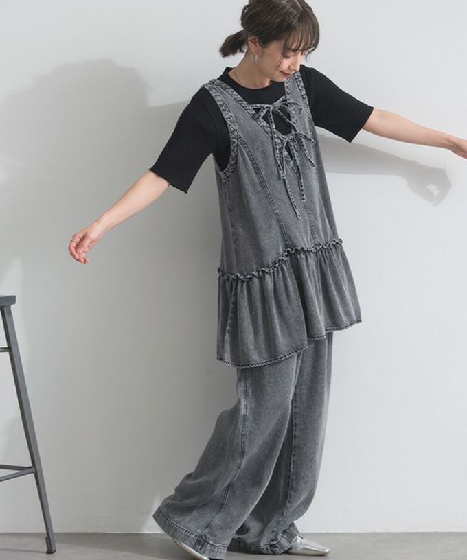 日本 ELENCARE DUE - 接觸冷感 天絲柔軟丹寧2way造型感背心-炭黑