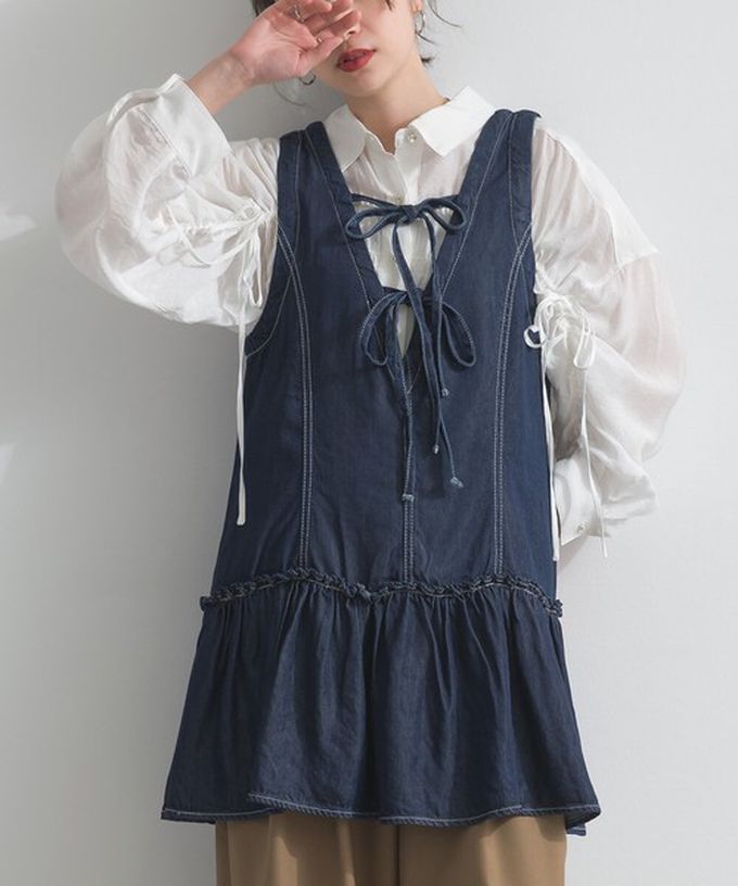 日本 ELENCARE DUE - 接觸冷感 天絲柔軟丹寧2way造型感背心-海軍藍