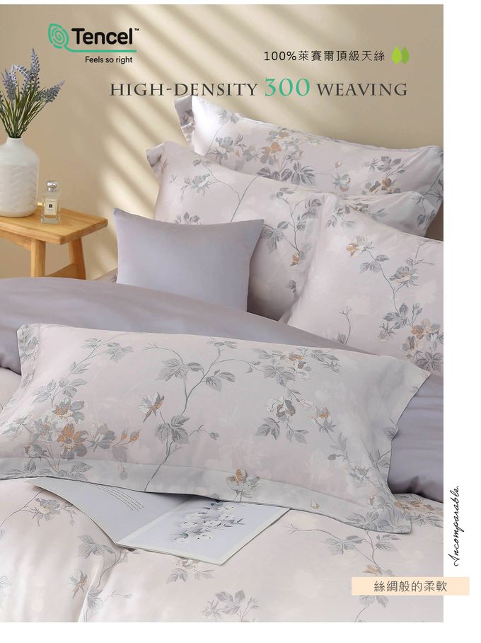 • 品名:雙人特大床包枕套組 300織100%天絲 萊賽爾