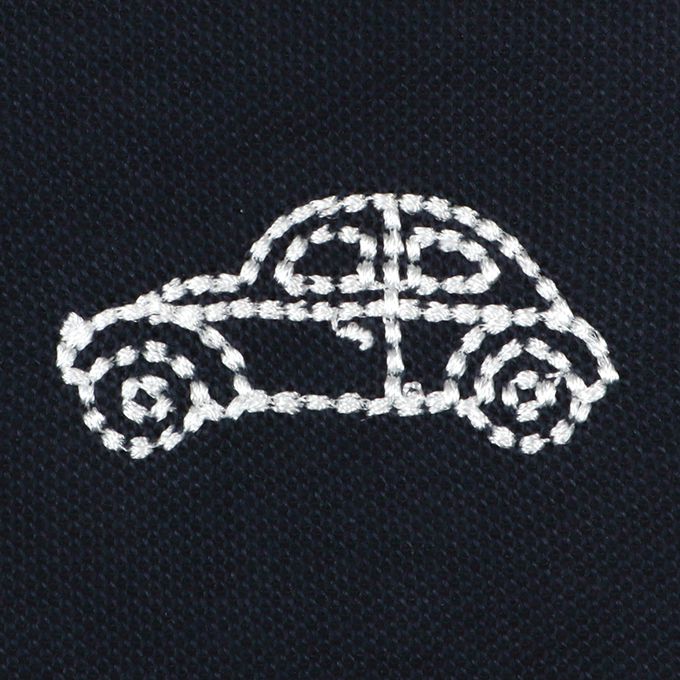 胸前的汽車刺繡和領子內側的格紋布料為亮點