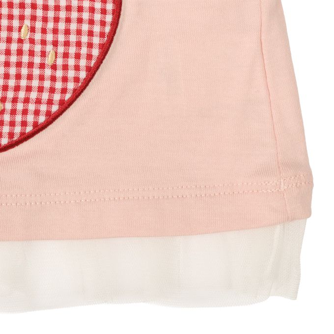 材質:本體:棉59%聚酯纖維41%羅紋部分:棉58%聚酯纖維39%聚胺基甲酸酯3%薄紗部分:聚酯纖維100%圖案部分:聚酯纖維85%棉15%