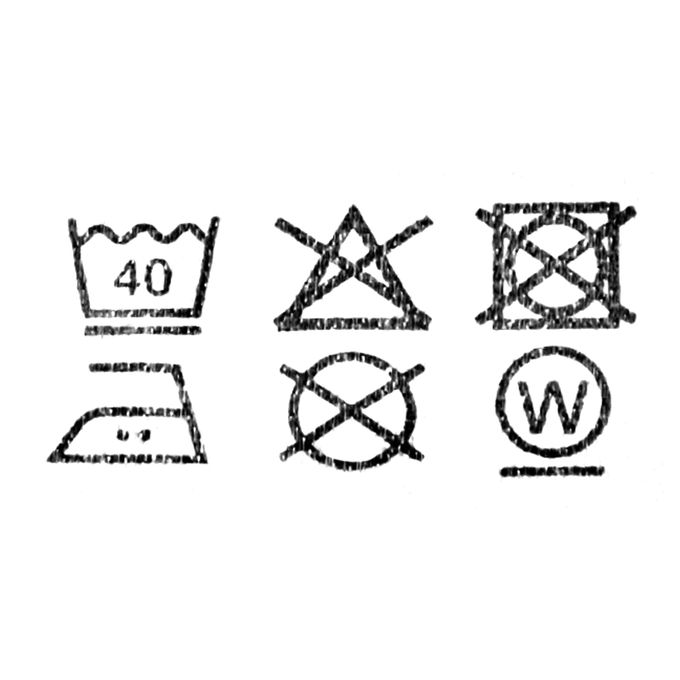注意事項:●標示內容遵照台灣法規之規定。●請使用洗衣網。●請使用不含螢光增白劑的洗劑。●由於素材的特性,容易勾住或卡住,請在穿著或洗滌時特別注意。●請勿熨燙釦子部分。