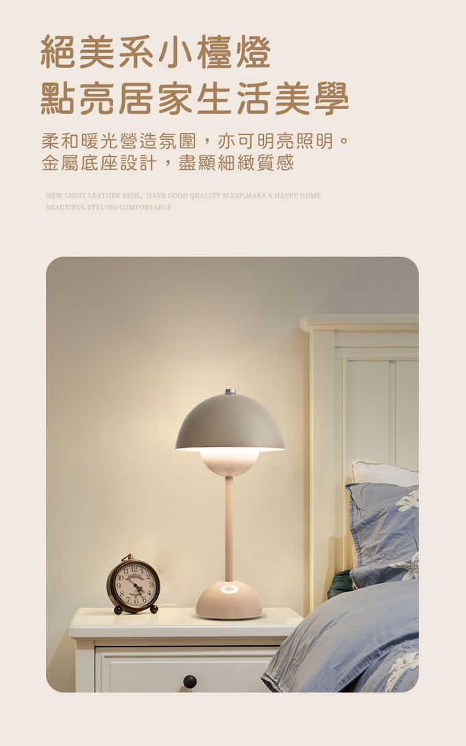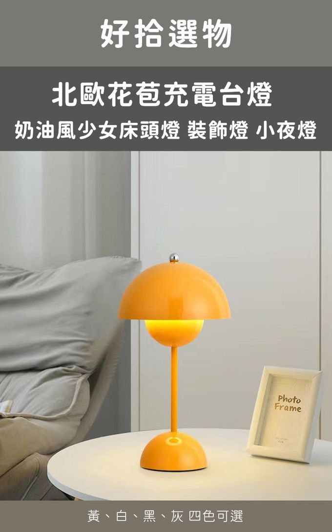 品名:北歐花苞充電台燈 奶油風少女床頭燈 裝飾燈 小夜燈 4色