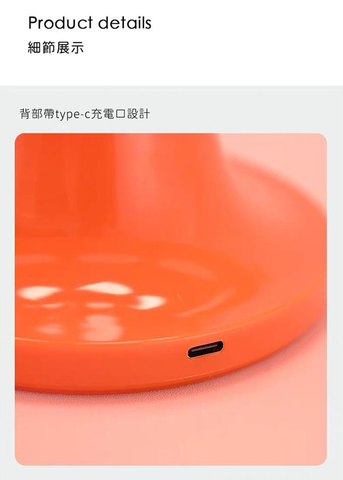 成分:顏色:橘、白 開關類型:觸摸開關 電池:1800mah 充電時間:約3小時 色溫:3000K-6000K三色變光 輸入電流:5V/1A 功率:5W 充電接口:TYPE-C