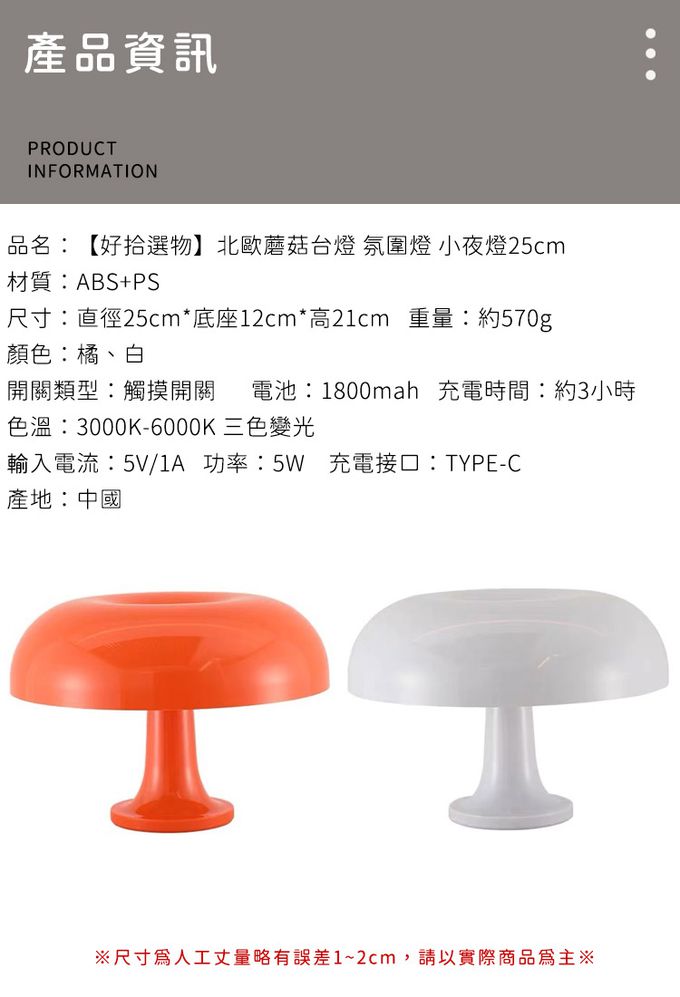 品名:北歐蘑菇台燈 氛圍燈 小夜燈25cm 2色