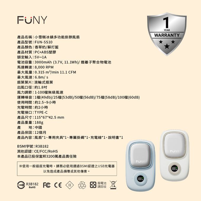 品名:小雪糕冰鎮多功能掛脖風扇