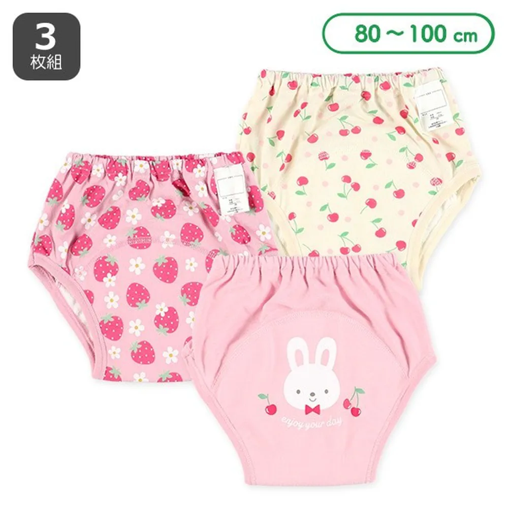日本西松屋 - 三層密縫式學習褲(3件組)-草莓/櫻桃/兔兔-粉紅