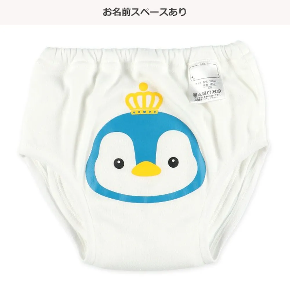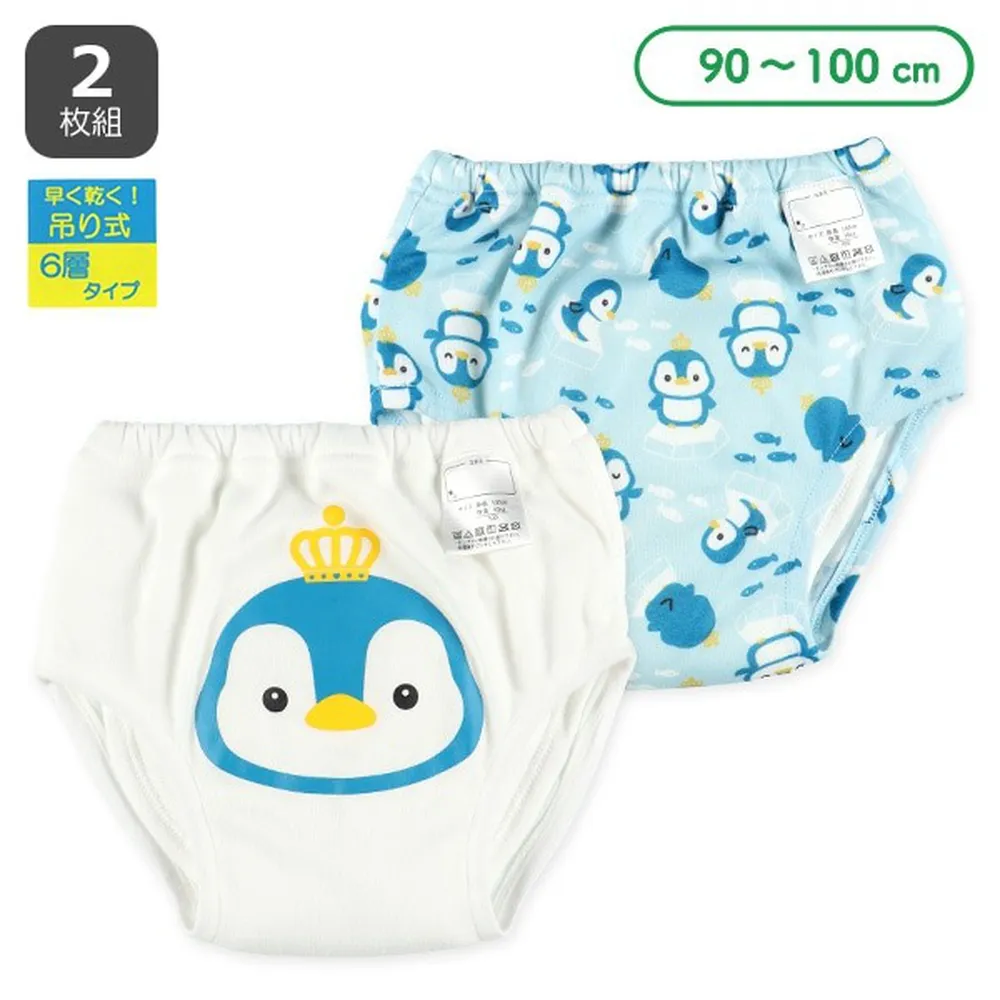 日本西松屋 - 六層分離式學習褲(2件組)-皇冠企鵝-藍白系