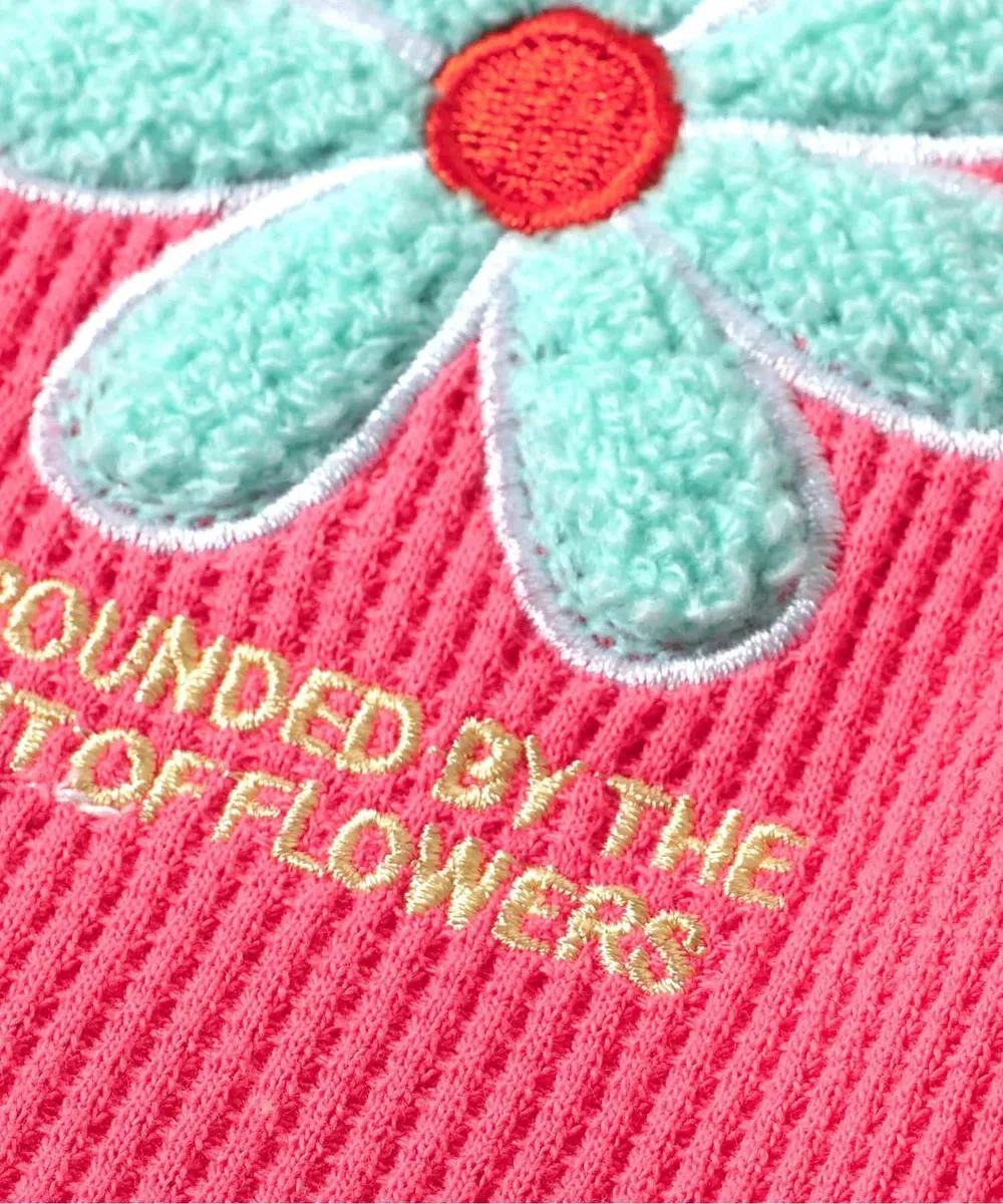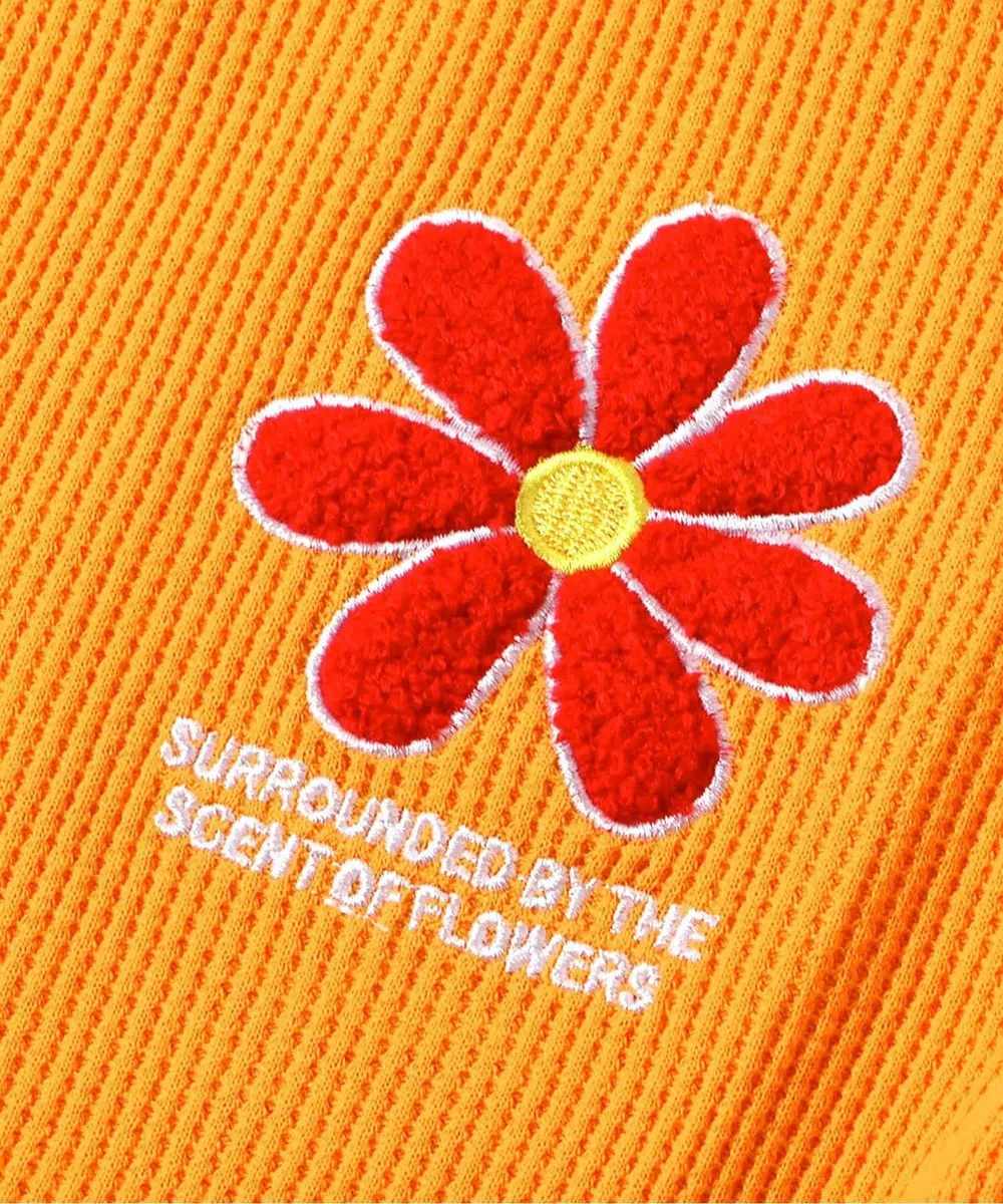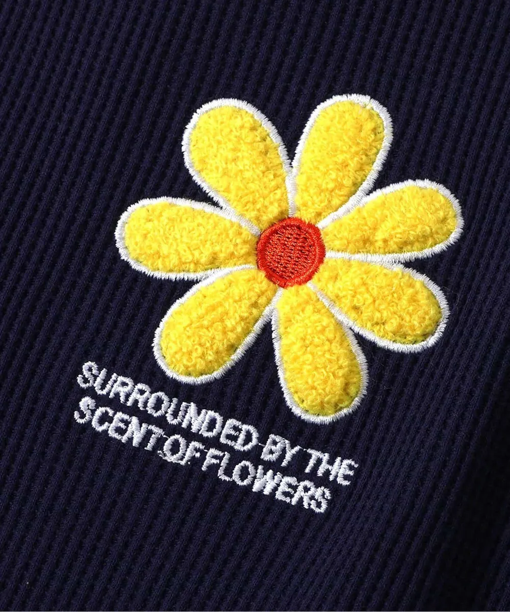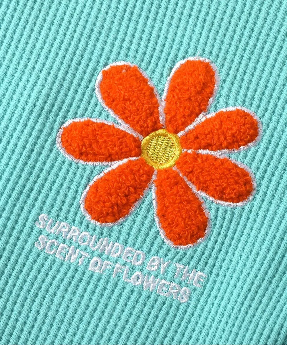 • 品名:胸前花朵可愛摺邊短袖上衣