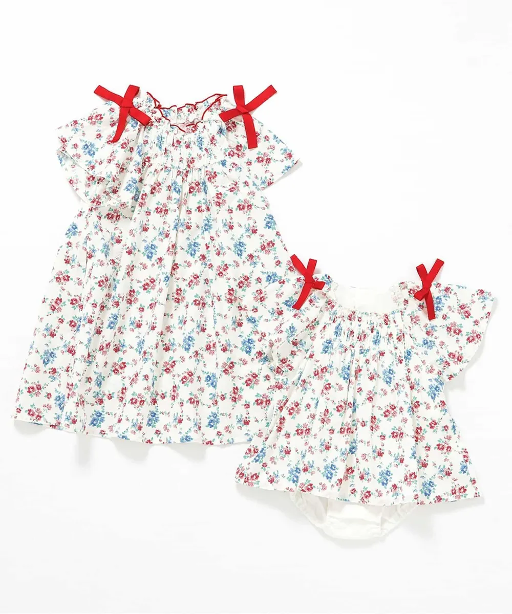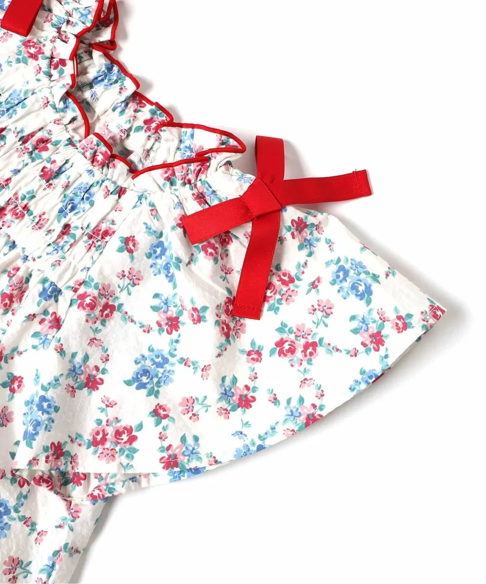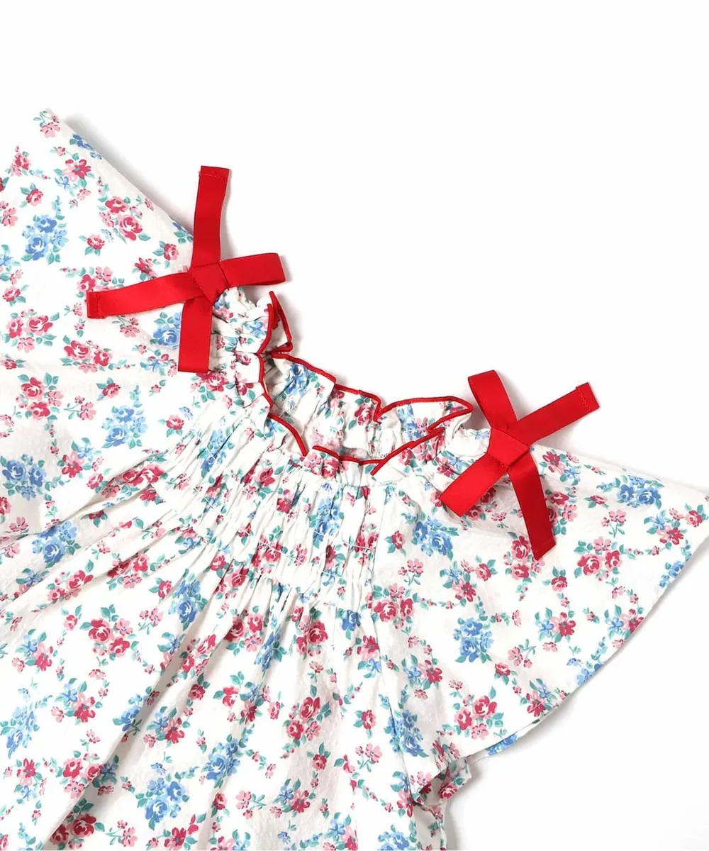 日本 apres les cours - 夏日蝴蝶結澎澎短袖洋裝-小花-白