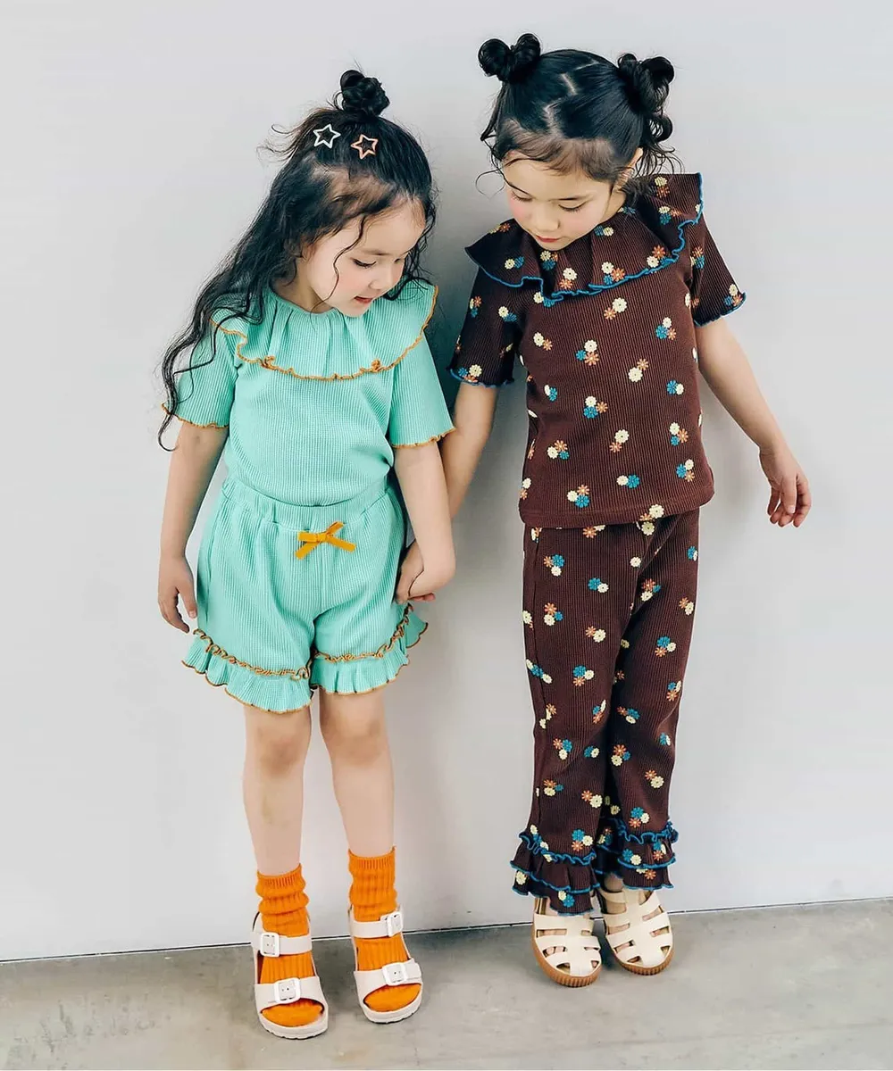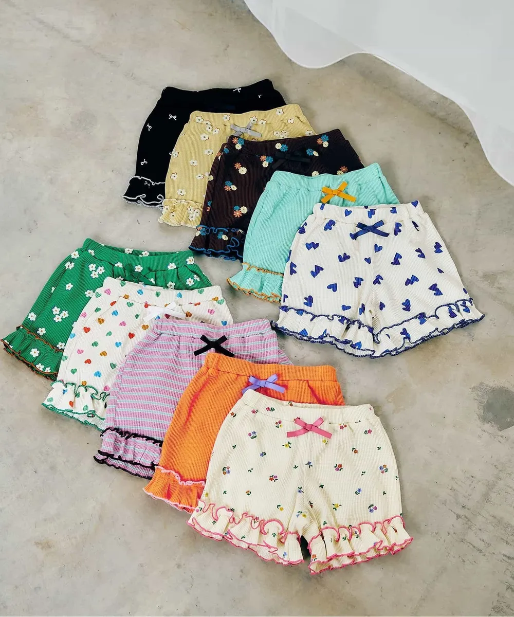 日本 apres les cours - 華夫格QQ荷葉短褲-素面-薄荷綠