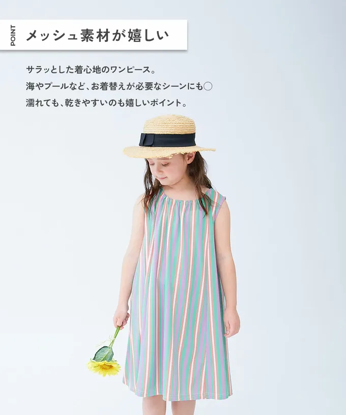 日本 devirock - 涼感速乾網眼 可愛印花無袖洋裝-直條紋-紫綠系