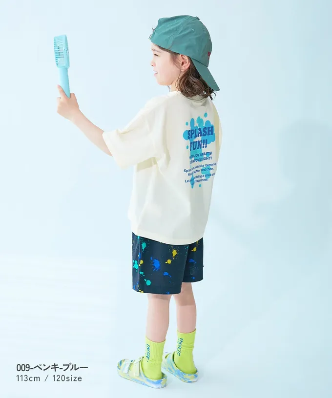 日本 devirock - 涼感速乾網眼 廓形短袖T恤-背後潑墨-藍
