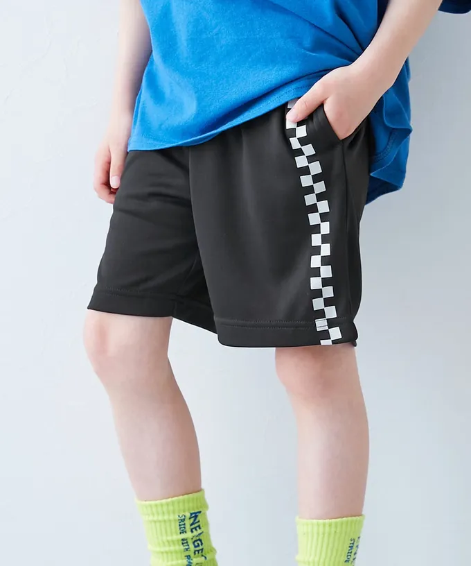 日本 devirock - 涼感速乾網眼 休閒短褲-側邊條-灰棕